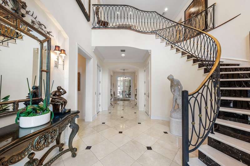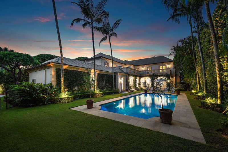 This extraordinary estate at 242 Wells Road combines classic French Provincial architecture with timeless elegance, offering an unparalleled lifestyle on one of Palm Beach's most prestigious streets. This magnificent 7,460 total sq. ft. French Provincial masterpiece is nestled on a sprawling 19,500 sq. ft. lot in the heart of Palm Beach. This stately manor, with its steep-pitched slate roof, symmetrical facade, and stone surrounds, exudes Old World charm and impeccable craftsmanship. The home's architectural grandeur is enhanced by graceful balustrades and meticulously sculptured landscaping, creating a serene and sophisticated retreat. Step inside to find luxurious interiors adorned with gleaming hardwood and marble floors