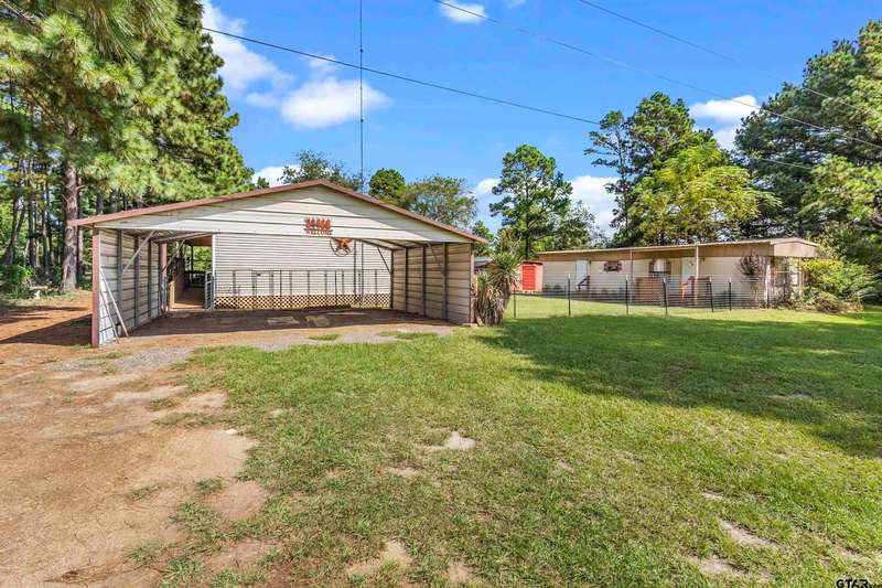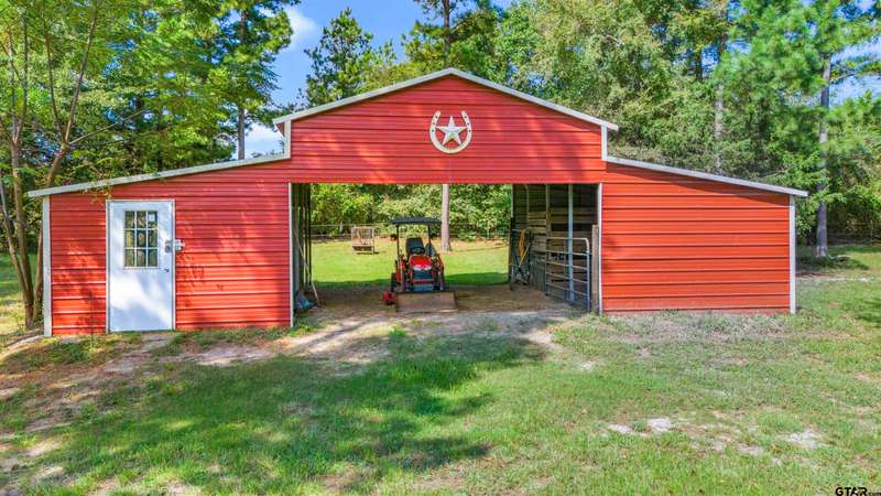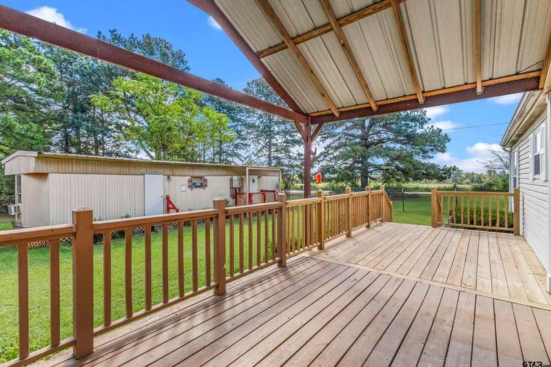 Nice double wide mobile home - interior freshy painted with new carpet and fireplace. Front Poarch has large deck 50% covered with new deck boards. Across main yard is a single wide mobile home with 2 BR and 1 bath. Previous owner uses a Man Cave / Could be she shed or just a great place for overnight company. Several storage buildings and new/large red metal barn designed for horses with stalls and Tac room. All this on 9.1 beautiful acers of level pasture with just the right number of trees. The house area is fenced for your pets. You have to come see this property to appreciate all the benefits for this Low price. Very nice refrigerator goes with property. New installed Sectrum lines providing reliable access to internet.