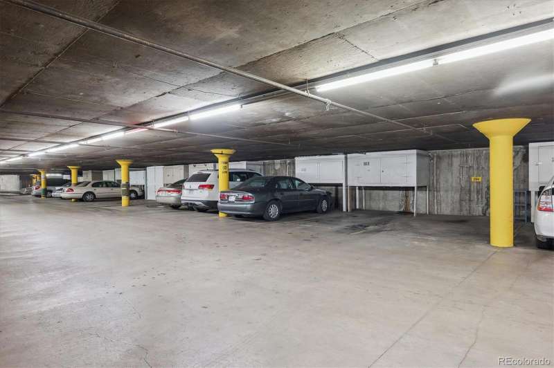 **Great location! Enjoy easy access across the street from the clubhouse and all the community amenities! Corner condo- 945 sf condo with underground parking, includes 2 bedrooms & 1 bathroom. Spacious remodeled kitchen with updated cabinetry, granite countertops, stainless appliances, tile backsplash, and wood laminate flooring. Bathroom with updated vanity, granite countertop, updated fixtures, and newer tile floors and tub surround. Spacious bedrooms with wall closet and ceiling fans. Neutral paint color scheme, newer white interior doors, and updated wall ac unit. Tiled lanai floor, open with views of mature trees and overlooks a courtyard. Additional bonus storage closet on same floor. This home is ready to go! **Windsor Gardens is Colorado's Largest Age 55+ Active Adult Living Condo Community. Did you know? Monthly HOA Dues include annual property taxes! And heat, water, sewer, trash, round-the-clock patrolling community responders, full time onsite association management, grounds/building maintenance, and activities department. Enjoy clubhouse amenities such as fitness center, indoor/outdoor pools, hot tub, sauna, billiards, library, craft rooms for ceramics, sewing, woodworking, and 9 hole par 3 golf course and onsite restaurant both open to the public. Stay engaged with a wide array of activities, clubs, and events scheduled every month. Additional features include garden plot program, private walking trail and nature preserve, and RV/Boat storage. The Highline Canal runs full length along south side of the complex. RTD Bus Stops located thru-out the community. FHA/VA approved. Close to restaurants, stores, shopping…Minutes to Lowry, Hwy 225, Cherry Creek…Easy access to DIA and downtown. Come see for yourself what Windsor Gardens has to offer. 2021**