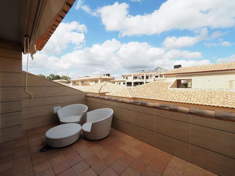 This magnificent townhouse is presented in the sought-after area of the Port of Jávea, Alicante, within a high-quality residential complex that stands out for its proximity to the sea, the port, and all essential services. The property is distributed over three levels and features five spacious bedrooms and three full bathrooms, making it ideal for large families or those seeking space and comfort by the Mediterranean. The property is part of a gated community that ensures security and tranquility, and offers a comprehensive range of exclusive facilities: an indoor heated pool, sauna, gym, paddle tennis court, and private landscaped areas. Additionally, it boasts a solarium perfect for enjoying the Costa Blanca climate, as well as a terrace of approximately 47 m². Notable features include an air conditioning system, underfloor heating throughout the home, elevator, fully equipped kitchen, and a practical storage room. The townhouse also has access to a closed garage in the community parking area, adding convenience and security for vehicles. The location is unbeatable, with easy access to schools, public transport, and all services, and is just minutes from the beach and the port. This is a unique opportunity for those seeking an exclusive, modern home with all amenities in one of the best areas of Jávea.