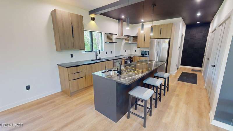 Experience the Epitome of Modern Luxury Living No detail has been overlooked in this exceptional smart home, where premium quality and sophisticated design are evident throughout -- down to the solid wood interior doors. This 4000 sq ft residence features 2,308 sq ft of versatile living space, including a spacious unfinished walkout basement that presents an exceptional opportunity for customization. Envision the possibilities for a dedicated theater room, additional bedrooms, or any other luxurious amenities you desire, making it a perfect canvas for elevated living. Situated on 4.1 private acres just 8 minutes from the charming Village of Goshen, this ultra-modern residence offers the perfect blend of comfort, style, and cutting-edge technology. This thoughtfully designed home features 3 spacious bedrooms and 3 beautifully appointed bathrooms. The open-concept kitchen is a chef's dream, showcasing stunning quartz countertops, a large island perfect for entertaining, and seamless flow into the living and dining areas. Bifold glass doors lead to a generous rear deck, creating a harmonious indoor-outdoor living experience. The luxurious primary suite includes dual walk-in closets, a double floating vanity, and a spa-inspired tiled shower. Two sliding doors open onto a private rooftop deck -- a serene escape offering both tranquility and elegance. This smart home is equipped with Wi-Fi-enabled appliances, a comprehensive security system, and programmable outdoor lighting that can be customized to celebrate every season or occasion. Additionally, the property is approved for a secondary dwelling, which can accommodate up to three bedrooms and one bathroom -- an excellent opportunity for a guest house, rental unit, or extended family suite.