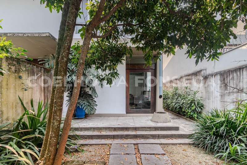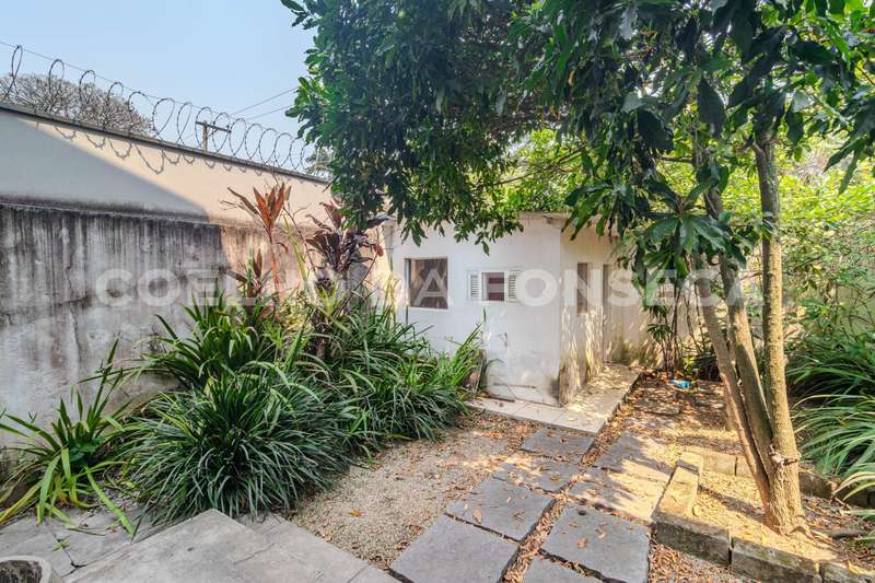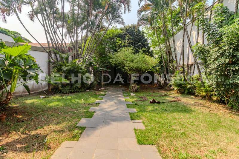 O jardim é um verdadeiro oásis no coração da cidade, rodeado de árvores que garantem privacidade e tranquilidade. Ao fundo, um salão versátil abre diversas possibilidades: ele pode ser transformado em um home theater, espaço gourmet ou servir de apoio para eventos ao ar livre. A área de serviço completa inclui uma lavanderia e dois quartos de empregada, oferecendo toda a conveniência necessária para o dia a dia.