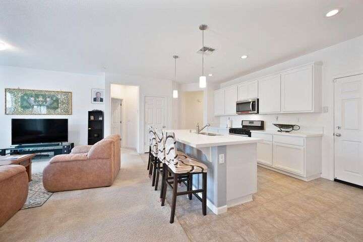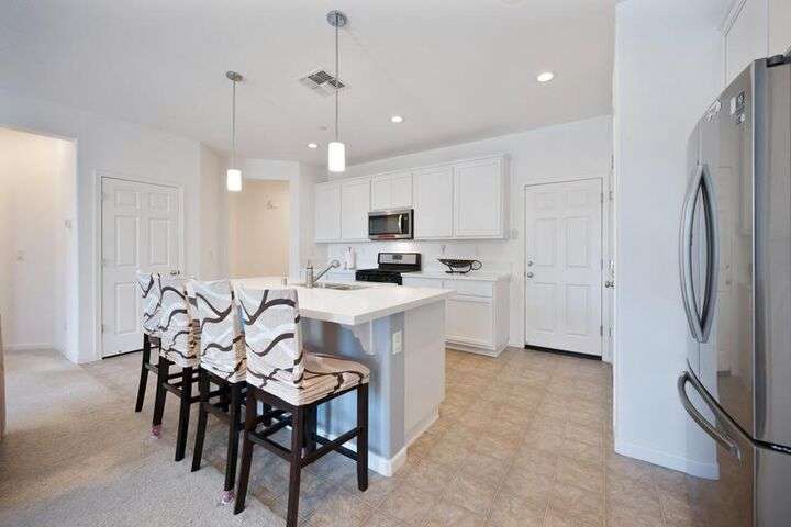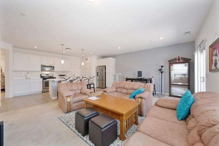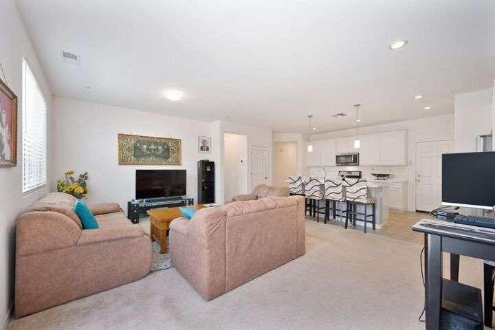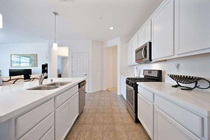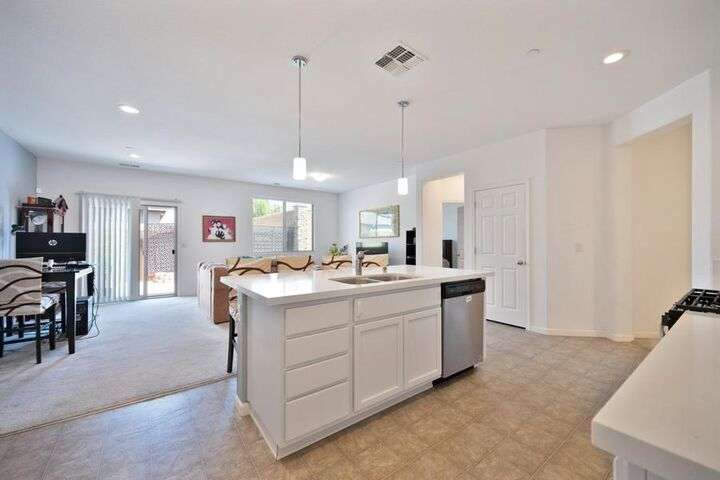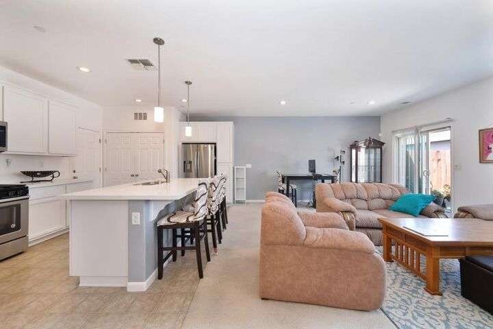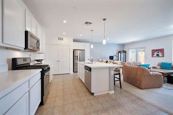 Charming single-story home featuring an open, flowing floor plan designed for comfortable living. The great room concept offers a spacious and inviting atmosphere, perfect for relaxing or entertaining. The kitchen includes a central island with sink and dining bar, granite countertops, and a convenient pantry. It opens seamlessly to the family room and nook area, enhancing the home's natural flow. With three bedrooms and two full baths, this home offers both functionality and comfort. Additional highlights include an indoor laundry room, a two-car attached garage, and a wonderful private yard that backs to acreage. Prime location!