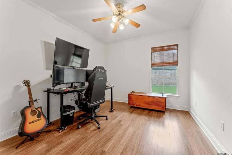 Spacious 5-Bedroom Home with In-Law Suite in The Lake at White Oak! In the living room you will find elegant triple crown molding, a fireplace surrounded by floor-to-ceiling built-ins, and large windows overlooking the fully fenced backyard. The kitchen is complete with granite countertops, stainless steel appliances, a gas range with a custom vent hood, an attached breakfast area, and a separate formal dining space—perfect for hosting. The spacious primary suite offers a relaxing retreat with dual vanities, a soaking tub, a separate shower, private water closet, and walk-in closets. Above the garage there is a 800-square-foot one-bedroom apartment—complete with a full kitchen and bath. Whether you’re looking for an income-producing opportunity, a teen suite, or a comfortable space for out-of-town guest! Additional highlights include a two-car garage with storage, a large separate workshop/storage space for tools or lawn equipment, and a covered patio that’s perfect for entertaining. This home did not flood in 2016 and is located in Flood Zone X. Enjoy the community’s many amenities, including parks, walking trails, and a welcoming neighborhood atmosphere. Conveniently located near top-rated schools, shopping, dining, entertainment, and quick access to both I-10 and I-12.