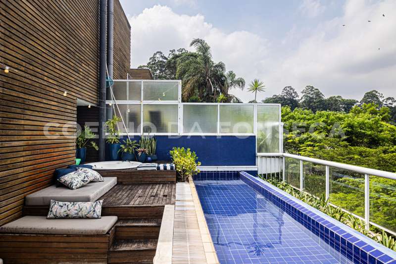 Uma casa tipo "loft" na copa das árvores, com direito a visitas de macaquinhos e tucanos. Assim é essa casa, de 4 suites (sendo 1 reversível ), de extremo bom gosto ,pois a proprietária é arquiteta, pensada em receber amigos e compartilhar bons momentos. Cozinha semi-aberta para varanda gourmet com churrasqueira à gás, e conta ainda com jacuzzi e piscina na cobertura com total privacidade e vista de tirar o fôlego. Condomínio fechado com segurança 24h, um achado no Real Parque.