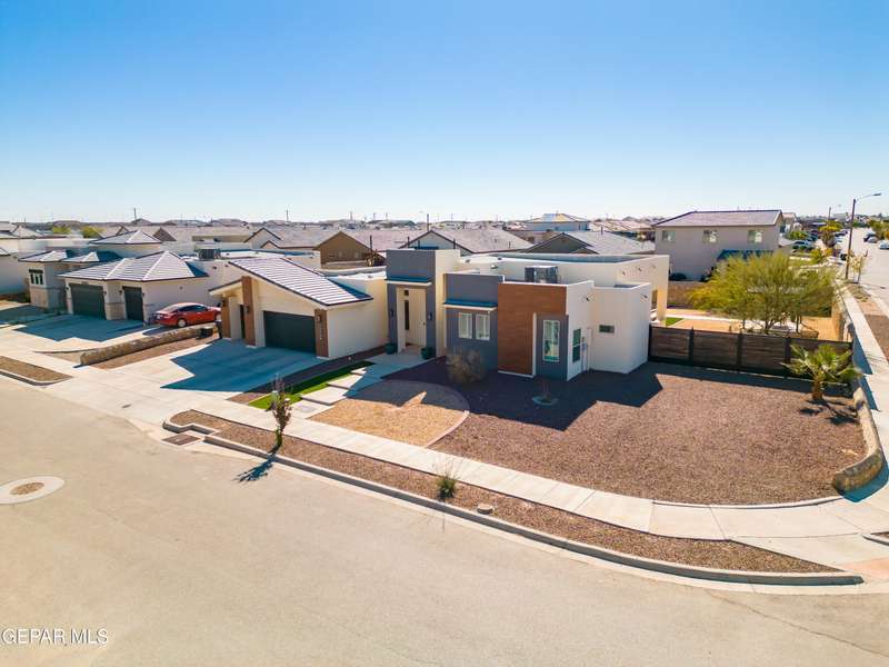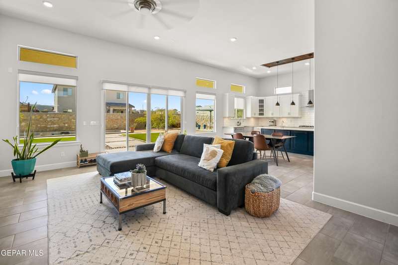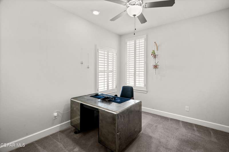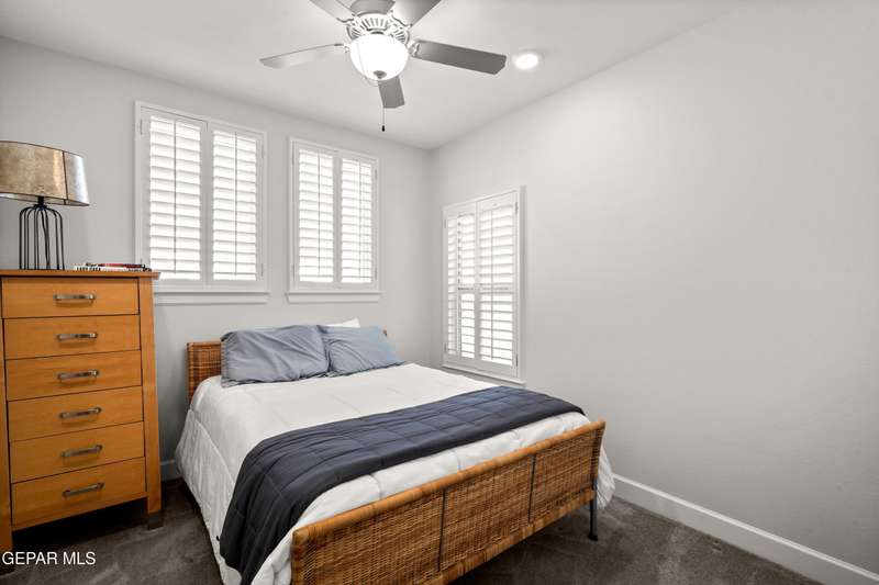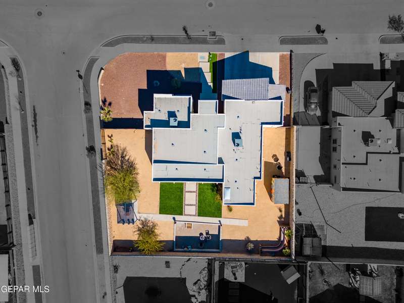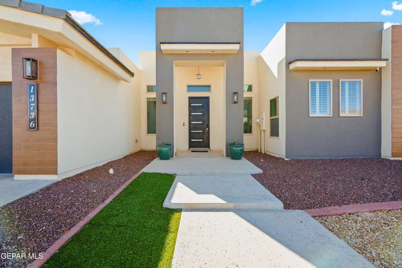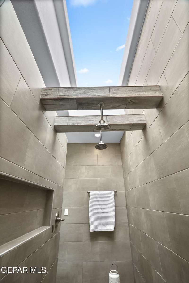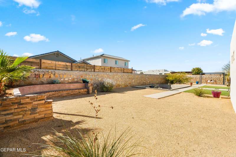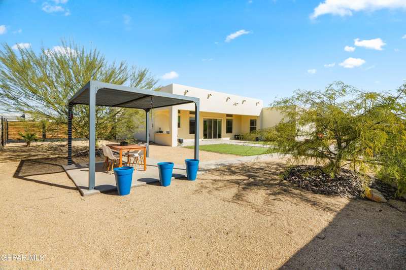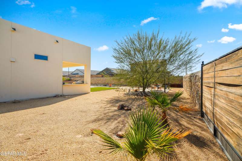 This custom-built home sits on two lots, offering extra outdoor space and a comfortable layout inside and out. The corner location provides added privacy, while mature trees and desert landscaping keep maintenance simple. Inside, the kitchen and bathrooms feature sleek quartz countertops, and the living area opens up with large sliding doors and plenty of windows for natural light. Custom blinds in the main spaces let you control light and privacy, while shutters in the bedrooms add a clean finish. The primary suite includes a spacious walk-in closet and a private bath with dual rainfall shower heads set beneath a skylight, a standout feature that brings in natural light and a spa-like feel. One additional bedroom also offers its own small walk-in closet. The home has been well maintained and already has a water softener installed. The home is priced competitively to attract serious buyers. It's a great opportunity to own a quality custom property with generous space and thoughtful details throughout.