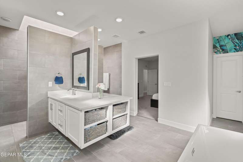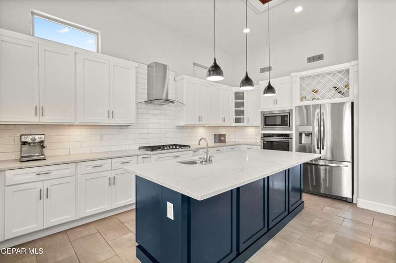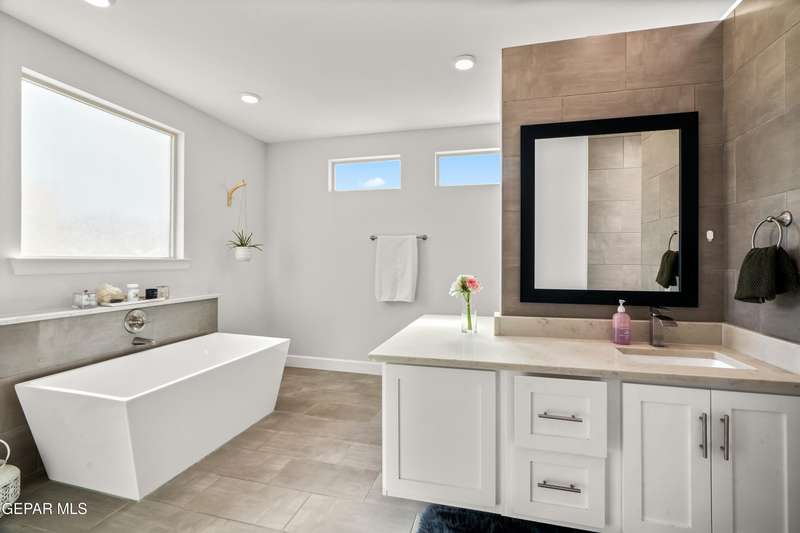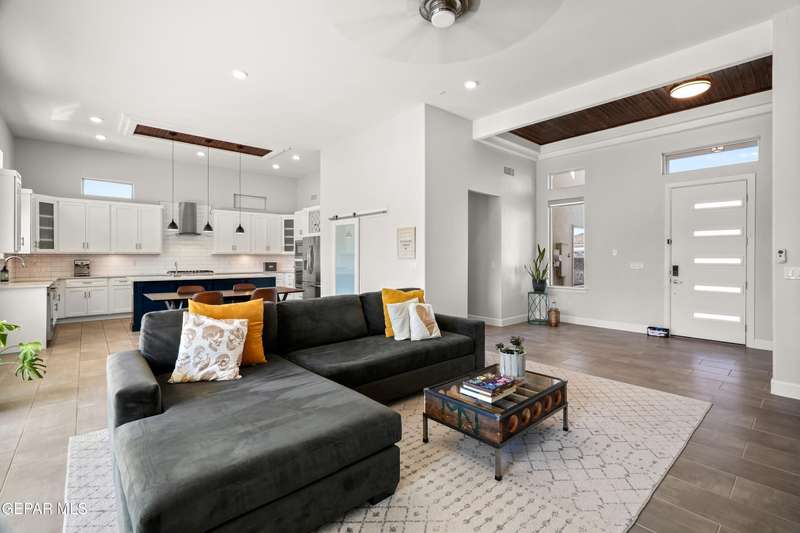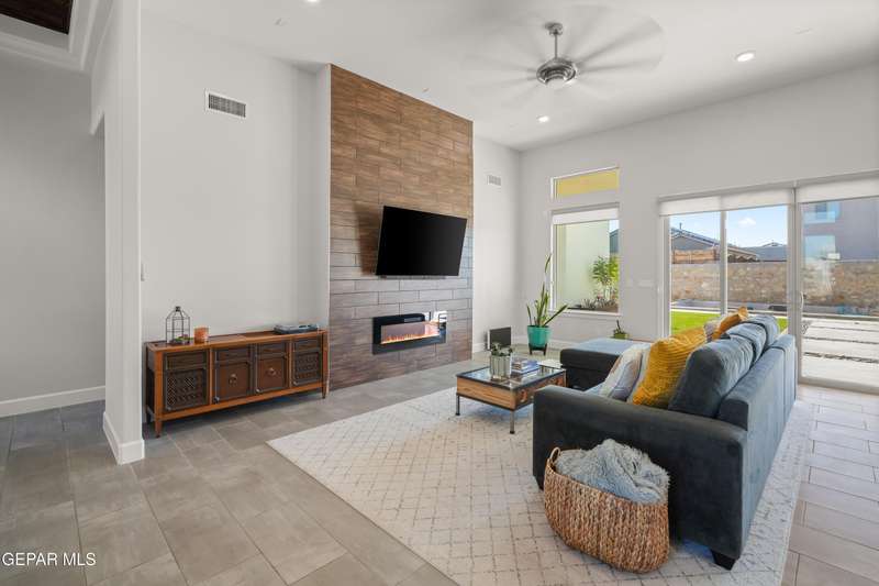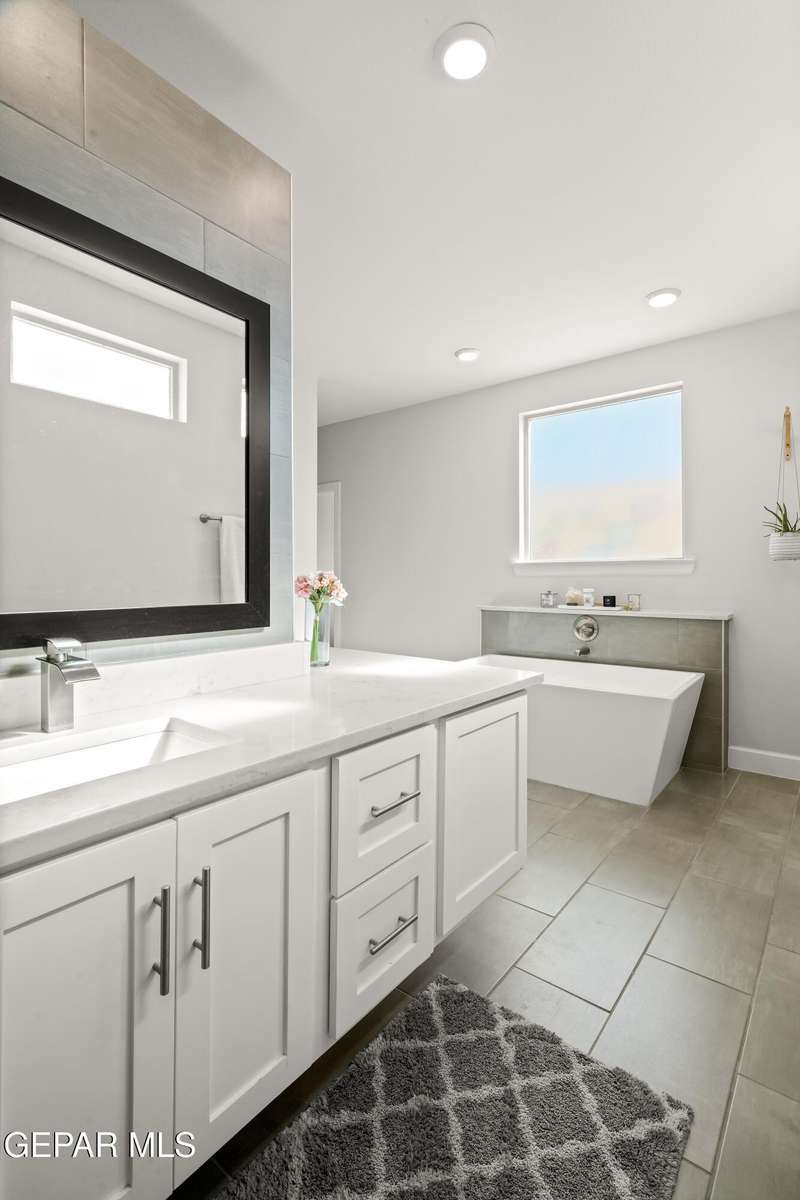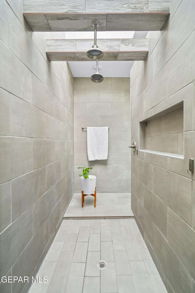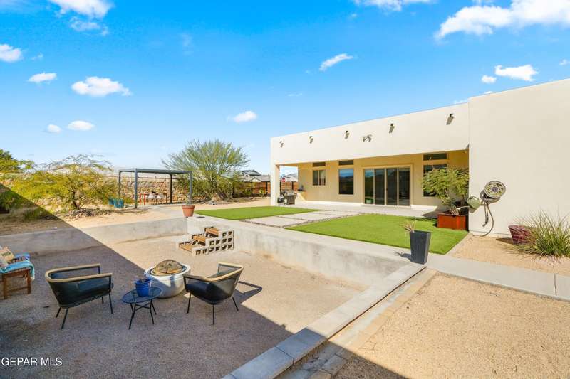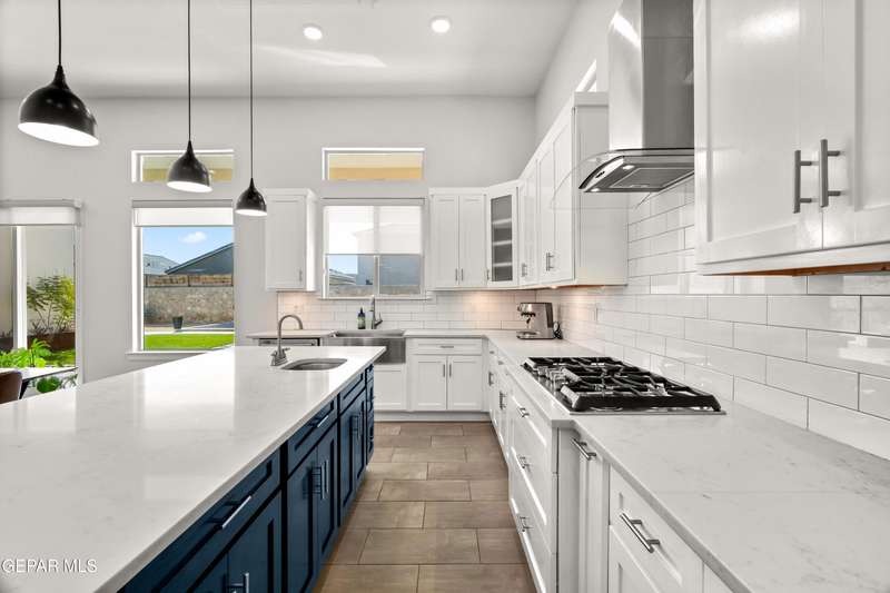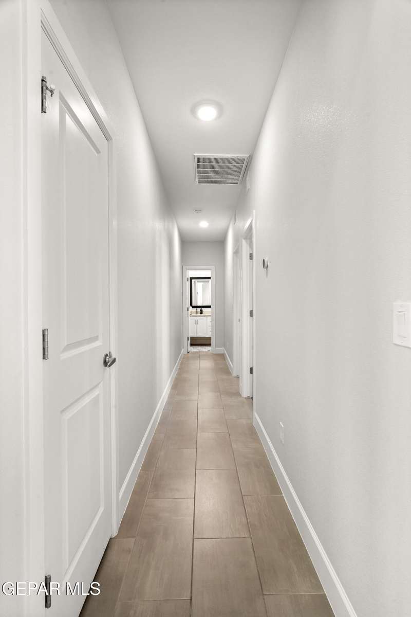 This custom-built home sits on two lots, offering extra outdoor space and a comfortable layout inside and out. The corner location provides added privacy, while mature trees and desert landscaping keep maintenance simple. Inside, the kitchen and bathrooms feature sleek quartz countertops, and the living area opens up with large sliding doors and plenty of windows for natural light. Custom blinds in the main spaces let you control light and privacy, while shutters in the bedrooms add a clean finish. The primary suite includes a spacious walk-in closet and a private bath with dual rainfall shower heads set beneath a skylight, a standout feature that brings in natural light and a spa-like feel. One additional bedroom also offers its own small walk-in closet. The home has been well maintained and already has a water softener installed. The home is priced competitively to attract serious buyers. It's a great opportunity to own a quality custom property with generous space and thoughtful details throughout.