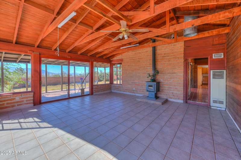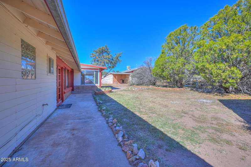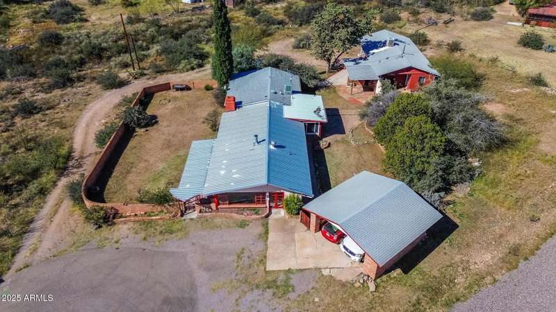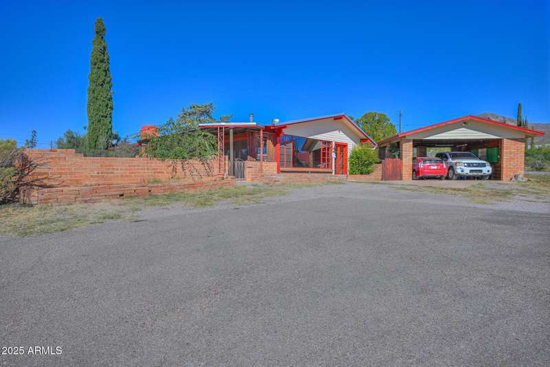 Discover endless potential in this charming San Jose Estates property! The main home offers 2 bedrooms and 2 baths with a circular drive and two-car carport. The front courtyard boasts a large outdoor space and two entry points. The front living space has a wonderful brick fireplace with built-in wood cabinetry. An open, airy kitchen overlooking the backyard and mountain views. Enjoy a formal dining space with more built-in shelving, and a spacious enclosed Arizona room, complete with wood stove. The primary bedroom has private bath access. Guest bath has a walk-in shower. The adorable detached casita adds 1 bedroom, 1 bath, and fantastic income/guest potential. Block wall fencing, covered front patio, built-in BBQ and more, complete this inviting estate, ready for your personal touch!