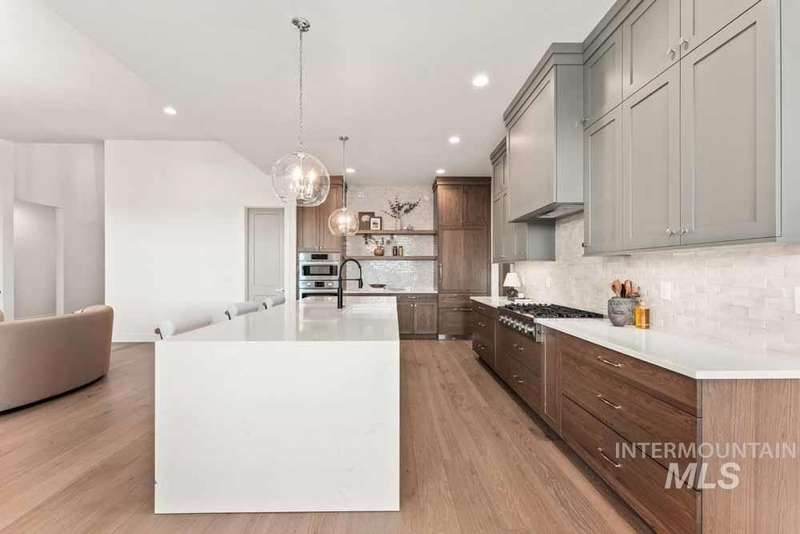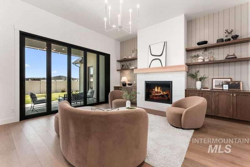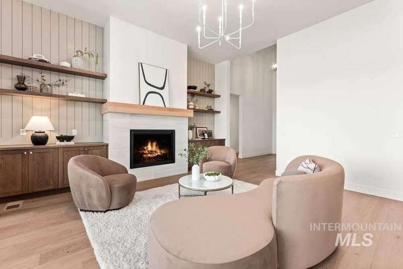 This beautiful Iron Oak Homes home offers comfortable single-level living, plus a bonus retreat upstairs for added space and flexibility! Enjoy a spacious open layout with soaring ceilings, Andersen windows, elegant finishes, and designer lighting. The great room showcases a floor-to-ceiling fireplace and Steelsen Telescopic doors to a covered patio. The gourmet kitchen boasts designer stainless appliances, ceiling-height two-tone cabinetry, and an oversized prep island. The luxe primary suite offers patio access, a spa-like bath with frameless glass shower, freestanding tub, and dramatic walk-in closet. A flexible 4th bedroom works perfectly as a home office or guest retreat. Upstairs features a large bonus room with its own bathroom. Additional highlights include a garage with oversized boat bay and 13-ft ceilings. Located in Centerra with access to a community pool, walking paths, and close proximity to downtown Eagle!