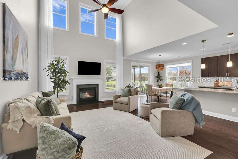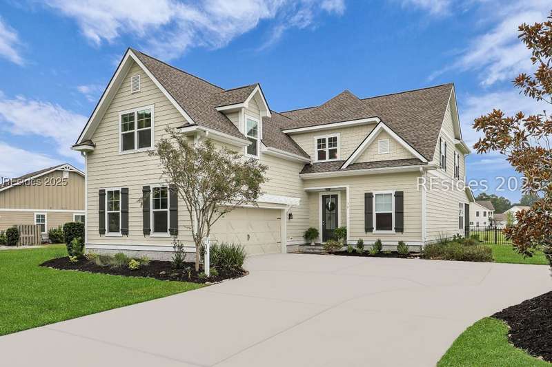 Welcome to this stunning 4-bedroom, 3.5-bathroom home in the highly sought-after gated community of May River Preserve in Bluffton, SC. Built in 2017 and meticulously maintained by the original owners, this spacious two-story home sits on over half an acre and offers breathtaking lagoon and water views.Step inside to an open-concept floor plan featuring engineered hardwood floors, elegant crown molding, soaring cathedral and tray ceilings, and a bright, airy layout designed for modern living. The first floor includes a welcoming foyer, a large great room with a built-in gas fireplace, a gourmet kitchen with granite countertops, stainless steel appliances, a large center island, and a sunny breakfast area. You will also find a separate dining room, laundry room with washer & dryer, powder room, and a spacious owners suite with a luxurious en-suite bathroom, soaking tub, oversized custom walk-in closet and the 40-foot screened porch overlooking the lagoon. Upstairs, enjoy brand new carp
