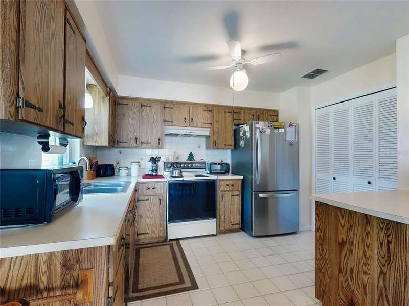 Under contract-accepting backup offers. PRICE REDUCED $14,900, MOTIVATED SELLER! Welcome to Your Dream Home in Florida Shores! This Home has Never Been Flooded!This meticulously maintained 3-bedroom, 2-bath home offers the perfect balance of comfort, style, and Florida living. Step into the spacious living room, which includes a 55” TV, where natural light flows effortlessly through the triple-pane windows providing an energy-efficient, quiet atmosphere. (excluding dining room slider and bathroom windows)The dining room, conveniently located just off the kitchen, features sliders leading out to a screened lanai—ideal for enjoying the mild Florida weather and sipping your morning coffee while taking in the serene surroundings of a large backyard for your sweet fur babies. And, with an extended slab off the lanai and an added walkway, your outdoor living space has never been better!Recent updates include a 2022 roof, gutters, a newer AC unit, and a newer garage door with opener, ensuring peace of mind for years to come. The home also features an oversized one-car garage, providing additional storage and parking space with a washer, dryer & laundry sink. Inside, the home is fully tiled with laminate floors only in the bedrooms, providing easy maintenance and a sleek, modern feel—no carpet to worry about. Plus, energy-efficient toilets in both bathrooms, along with new lighting and mirrors, add to the home's appeal.Five ceiling fans ensure cool breezes throughout the home, and you’ll love the fact that it’s not in a flood zone, giving you even more peace of mind. With close access to both the beach and the Intracoastal Waterway, you’re perfectly positioned to enjoy all that Florida has to enjoy. And best of all—no HOA fees!Don't miss out on this incredible opportunity to own a home that truly has it all—comfort, style, and convenience. Schedule your showing today and make this dream home yours! Motivated Seller! “All information in the MLS is intended to be accurate, but it cannot be guaranteed.”