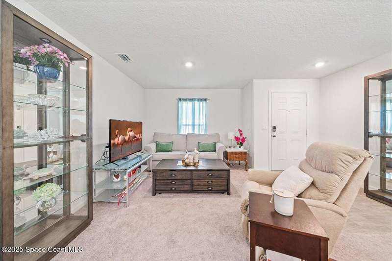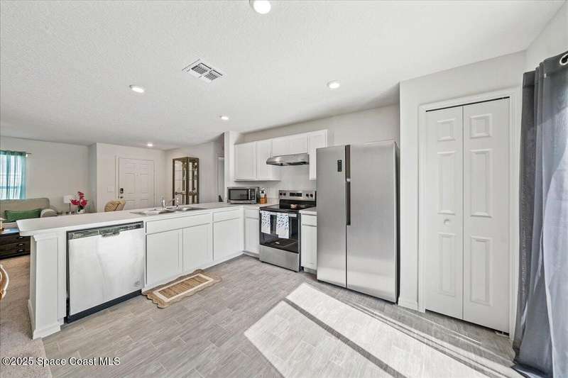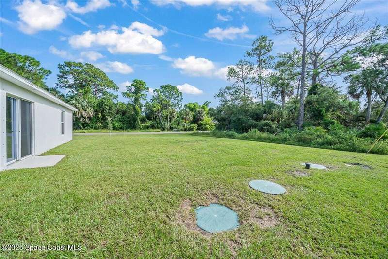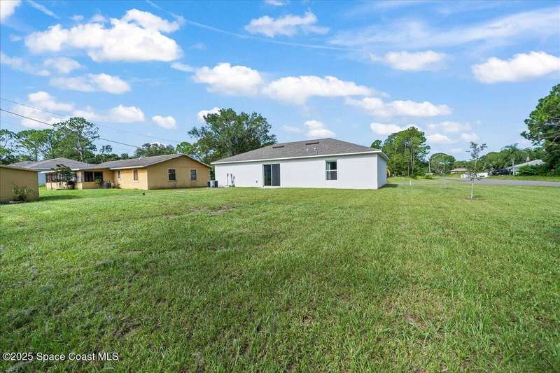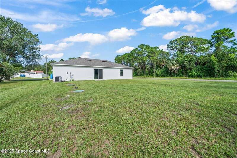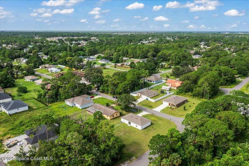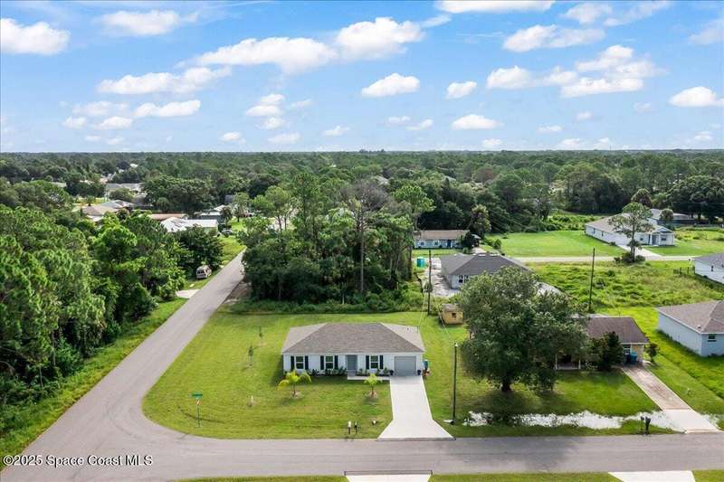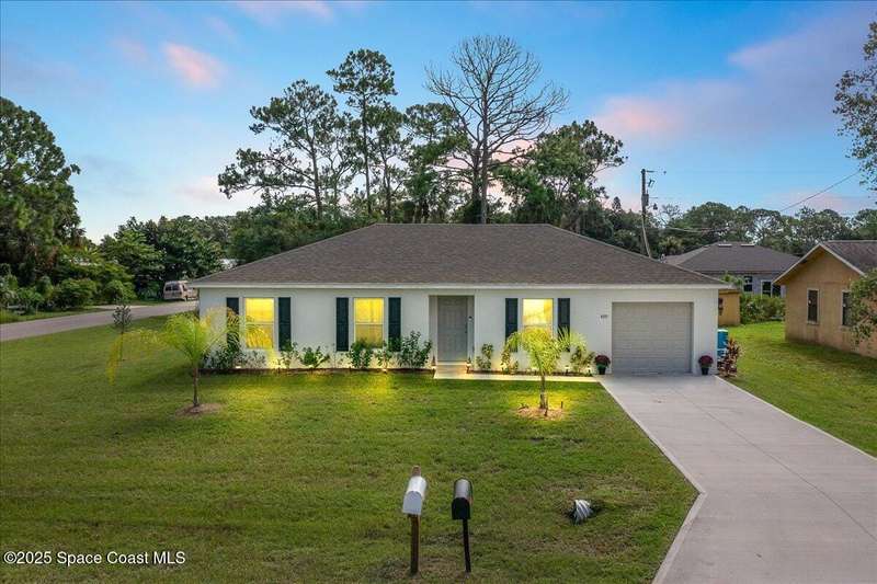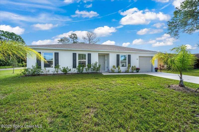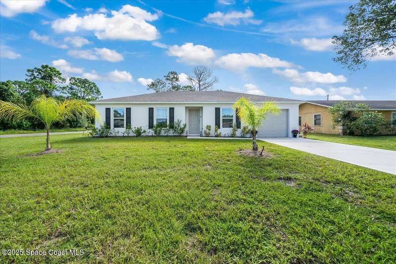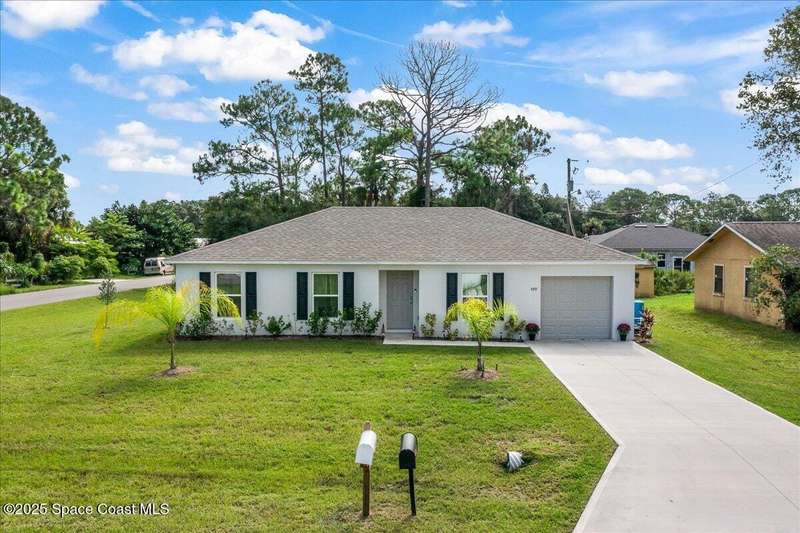 I dare you to find a better sprawling, oversized corner lot, where endless possibilities meet modern elegance in this stunning 3-bedroom, 2-bathroom gem, crafted in 2024 with robust concrete block construction for timeless durability. Nestled on a generous corner parcel, this move-in-ready haven offers space to dreamwhether it's a lush garden, outdoor oasis, or future expansion. Step inside to an open-concept masterpiece, where a sleek kitchen with gleaming stainless steel appliances (all included!) beckons culinary creativity and seamless entertaining. The R & S water treatment system, storm shutters, and Ring camera system ensure effortless comfort and security. Just 15 minutes from sun-kissed beaches and 90 minutes from Orlando's magical attractions, this home blends coastal serenity with adventure. Perfect as a forever home, vacation escape, or savvy investment, this property sparkles with style and opportunity. Don't miss your chance to own this slice of paradise.
