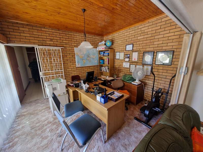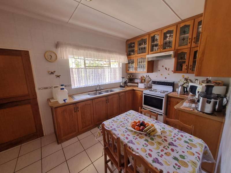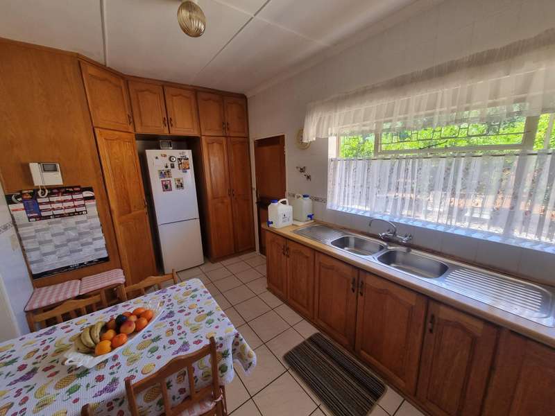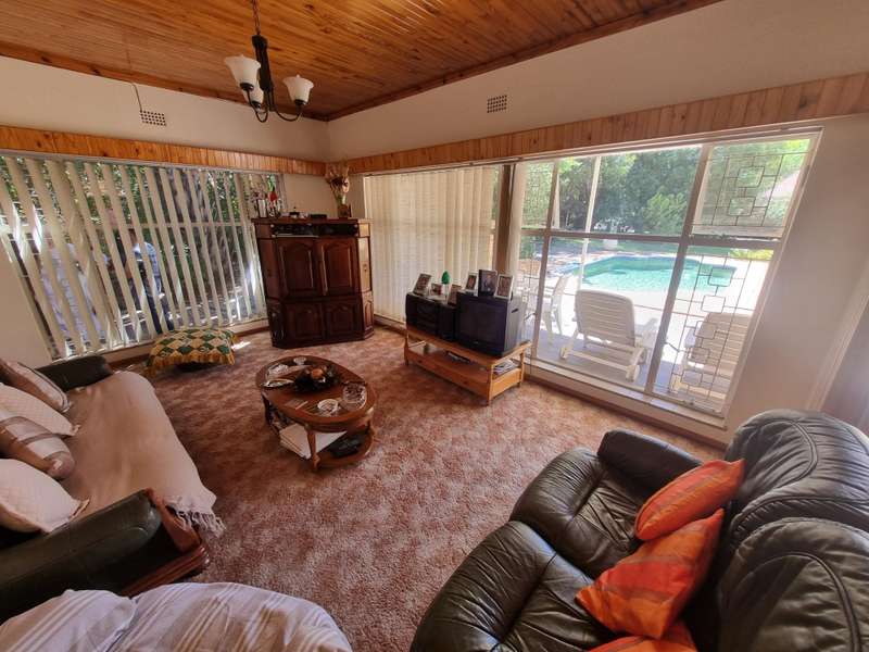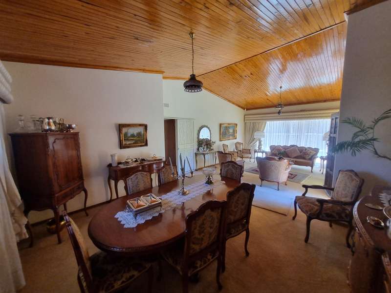 This spacious family home, located in a sought-after neighbourhood, offers ample room for customization and modernization. With a north-facing orientation, the property boasts a generous yard, established trees, and a refreshing swimming pool with a relaxing patio. The family room and study conveniently lead to an outside patio, enhancing the living space. The house features 3 bedrooms, 2 full bathrooms, a functional kitchen, and an open-plan lounge and dining room. Additional features include a double garage, 3 carports, a borehole with a Jojo tank, and a convenient domestic room. Discover the potential within this spacious family home, perfectly located in a desirable neighbourhood. Embrace the chance to create your ideal living space with a large yard, swimming pool, and versatile interiors. Act now and turn this property into your family's modern haven.