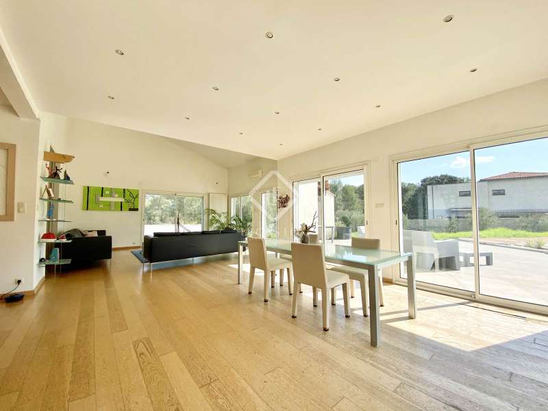 Lucas Fox International Properties, architect-designed house to renovate and its large plot, in the sought-after Fondespierre area of Castries. This 240 m² property was built in 2000 on a huge plot of nearly 2,800 m² where numerous olive trees of respectable age adorn the garden. The entrance opens onto a large, bright, south-facing living room of 75 m², with a TV area that can be closed off. A separate kitchen with a pantry adjoins the dining area and opens onto the terrace. There are also three bedrooms and two bathrooms on the ground floor of the west and east wings of the house. The upper floor is reserved for the master suite which consists of an office, which can be used as an additional bedroom, a large bathroom with dressing room and a solarium, as well as the bedroom, overlooking the garden. The latter surrounds the house and benefits from a pleasant swimming pool of 11 m by 3 m, surrounded by a terrace, a pétanque court as well as numerous parking spaces if necessary. A crawl space is located beneath the entire building and could easily be used as a cellar. A closed garage and a laundry area complete the features of this property, which requires extensive renovation work. Get the complete file and more information from your dedicated agent, Sébastien ANGLADE Commercial Agent - RSAC n° 813 793 833 Montpellier. Information on the risks to which this property is exposed is available on the Géorisques website: www.georisques.gouv.fr.