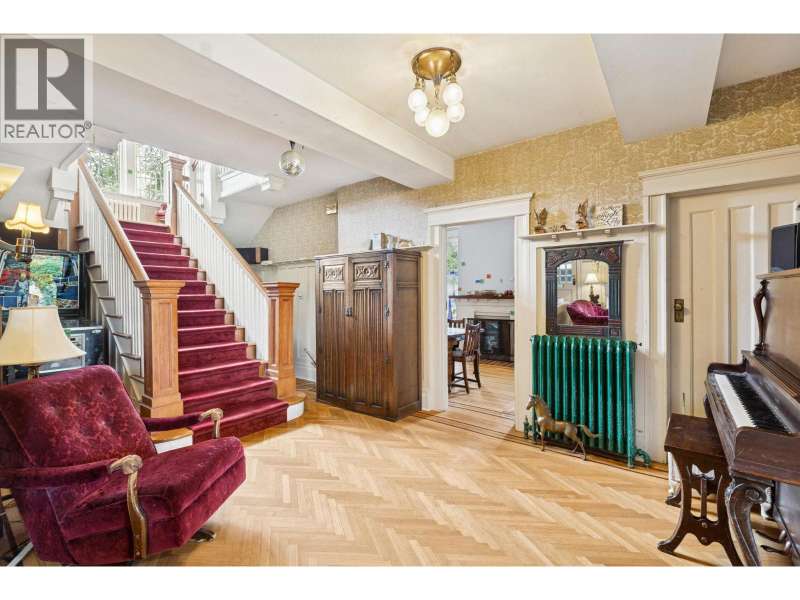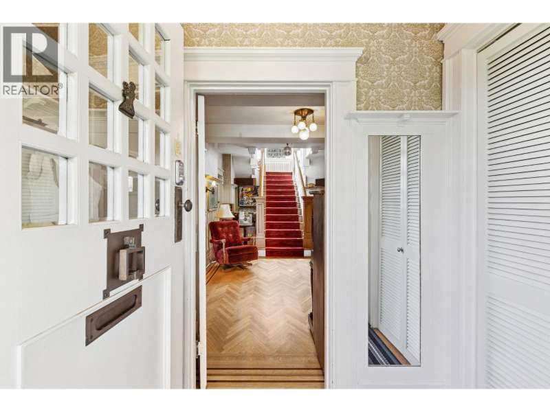 The crown jewel of Grand Boulevard, this iconic Edwardian home was built in 1912 for the Reeve of North Vancouver. Towering and unique, it captivates with soaring ceilings, a grand staircase, leaded glass, and hardwood floors with period inlay. Generous principal rooms, elegant pocket doors, and wood-burning fireplaces whisper stories of a bygone era. With five bedrooms, a rare two-level garden suite in the former servant´s quarters, and a recently updated kitchen and bathroom, the layout offers remarkable flexibility for families or multi-generational living. On the quiet side of Grand Blvd, private, lush gardens envelop the home, creating a quiet retreat just five blocks from vibrant Lonsdale. More than a residence, this is a living piece of North Vancouver´s rich history. (id:58403)