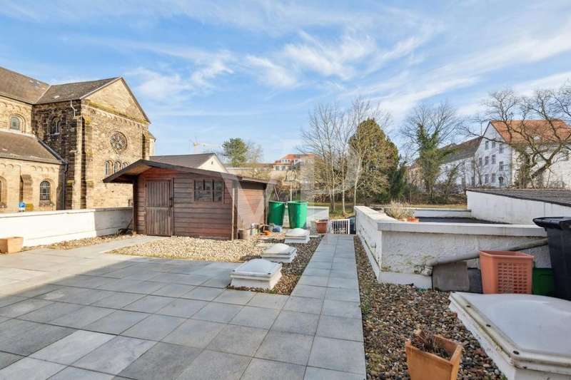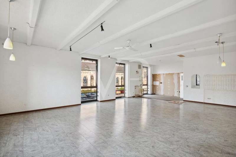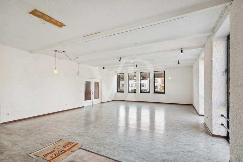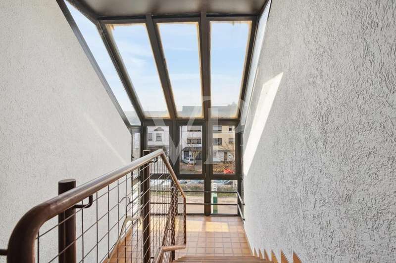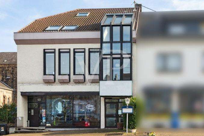 This property was originally built in 1968 with a first floor and basement. In 1981, the building was extended by two further residential floors, which considerably increased its attractiveness and potential uses. Over the years, the house, which is attached on one side, has developed into a versatile residential and commercial property. The first floor has a separate entrance and is currently rented out and used as a tattoo studio. The current tenant has set up a laboratory/photo studio, the boiler room and customer WCs here. The rented large space exudes an inviting atmosphere of creativity, which gives it individuality. A separate and inviting, light-flooded staircase with unique window elements leads to the upper floor with its impressive living space. This living space impresses with its generous, floor-to-ceiling windows, which provide a wonderful view of the surrounding area. Here you have the option of creating either another commercial unit or a charming apartment. The kitchen leads onto a spacious, attractive terrace. The view of the picturesque church invites you to spend cozy hours outdoors. One floor up, you will find another spacious, bright apartment with a living and dining area, a kitchen, a bathroom with shower and bathtub and two bedrooms. The rooms radiate brightness and generosity. This apartment also offers the option of commercial use. The attic A special little highlight awaits you on the top floor: a studio-style retreat that can be reached via a narrow staircase in the stairwell. Here you will find absolute privacy, complemented by a compact shower room and a storage room. This property offers a wide range of possible uses, whether as a comprehensive commercial unit or partially converted for residential purposes. Experience the benefits of this special property for yourself and arrange a viewing today