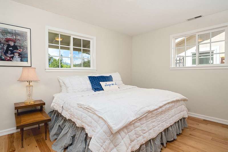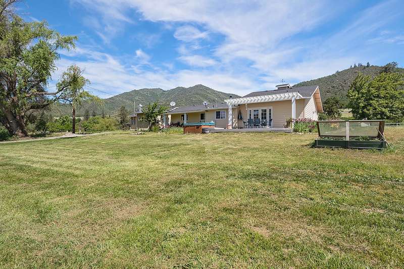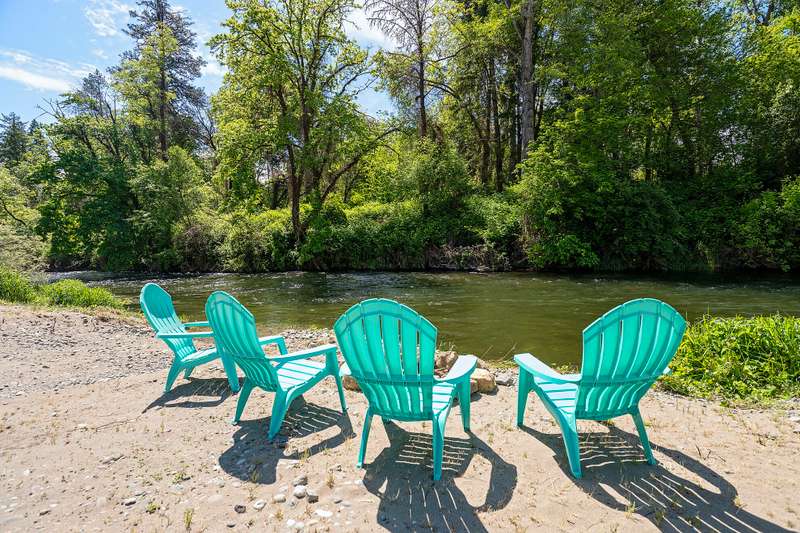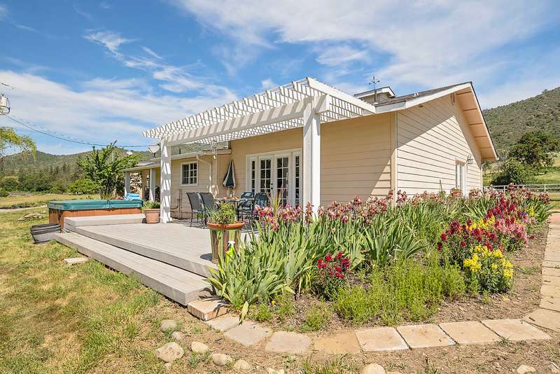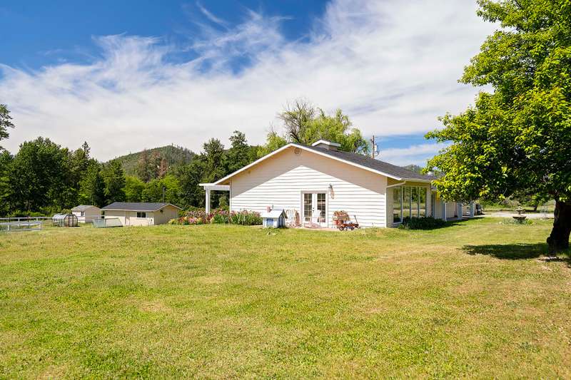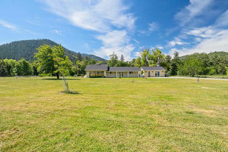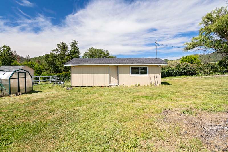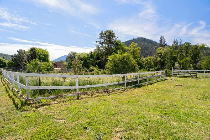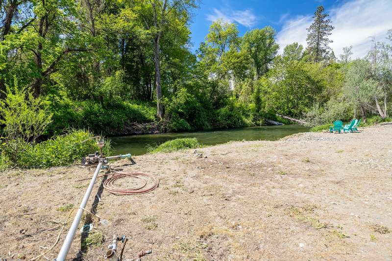 Nestled on the riverfront in the heart of Applegate Wine Country, this single story 4-bed, 2-bath home offers an idyllic lifestyle with premium Applegate River access and farm-to-table setup. The house features hardwood hickory floors, granite countertops, and stainless-steel appliances. The living room boasts vaulted ceilings, while the master features French doors opening to a spacious Trex deck and hot tub. Enjoy an estate-like ambiance with a 16' solar-powered privacy gate. The property is fully irrigated with in-ground sprinklers and river-sourced risers. Unlock potential income with a permitted commercial kitchen and cheese-making area. Embrace sustainable living with an expansive garden, greenhouse, and additional storage shed, plus a 16x20 shop with 220V power. At the back of the property discover approximately 350 feet of beachy river frontage, perfect for a day of fishing or just hanging out by the water.