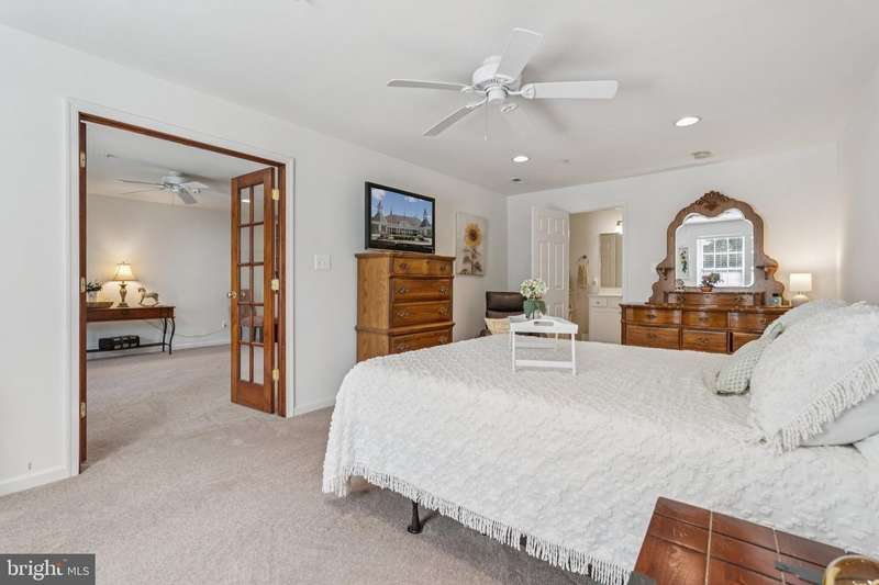 Welcome to this stunning interior villa, perfectly located within one of the area's most coveted golf communities, Bulle Rock! Boasting a blend of elegance and modern comfort, this home offers a spacious and open layout with thoughtful design details throughout. The main level features a luxurious primary bedroom suite, offering the perfect retreat with ample space, natural light, and a private, serene atmosphere. Soaring vaulted ceilings create an expansive and airy feel in the main living areas, enhancing the sense of openness and light. The chef's kitchen is a true highlight, featuring high-end appliances, abundant cabinetry, and a breakfast nook. The kitchen flows seamlessly into the great room, making it perfect for both intimate gatherings and larger entertaining events. Main floor Laundry room makes single level living easy. Step outside to the composite deck, where you can enjoy peaceful views of the lush woods that back to your home- ideal for your morning coffee, evening relaxation or hosting guests in an idyllic setting. Upstairs, you'll find a generously sized bedroom, a large loft and bonus room with easy access to a full bath. The fully finished lower level offers a wealth of possibilities. Whether you're looking for additional living space with bedroom three, and a full bathroom, a home theater, or a playroom, this area is versatile and ready to meet your needs. Along with plenty of storage! The rear sliding door walks out to a beautiful paver patio with overhead pergola. The community also features a 37,000 square foot Residents' Center with full gym, indoor and outdoor pools, billiards room, shuffleboard, tennis and pickleball courts and more! Lawn care and snow and trash removal are included in your monthly dues. Enjoy long walks on the miles of hiking trails and don't forget to visit the playground up the road from Bulle Rock Golf Course. This location has it all! Discover living in Bulle Rock where life imitates vacation. Must See!