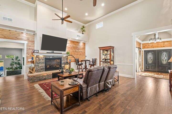 This custom 2023 residence presents a rare opportunity: 32.76 unrestricted, level acres. Spanning 4,935 square feet, 3 BR, 3.5 baths, the home blends comfort, technology, and efficiency with modern design. Inside, you'll find commercial-grade appliances, custom finishes throughout, foam insulation, and three HVAC systems. Dual tankless water heaters and Cat 6 fiber internet ensure year-round comfort and seamless remote work. Advanced security features—including AI-equipped outdoor cameras and a gated entry—add peace of mind for those who value privacy and travel. The land itself is as remarkable as the home, with hardwoods, fruit trees, ponds, creeks, and drivable cleared paths that lead to multiple sites ideal for future builds or barns. A koi pond, sauna, hot tub, and chicken coop further enhance the property's lifestyle appeal. Private yet convenient to Cookeville, Knoxville, and Nashville, this is a rare Tennessee retreat offering both sanctuary and endless possibilities.