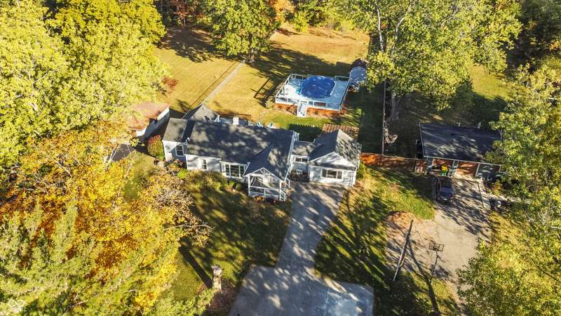 Welcome to this true needle in a haystack! This beautifully maintained 3-bedroom, 2-bathroom home blends comfort, charm, and functionality - move-in ready and waiting to welcome you home. Step inside to a spacious living room where vaulted ceilings and a cozy fireplace create a warm, inviting atmosphere, perfect for relaxing or entertaining. The stylish kitchen features an elegant backsplash and plenty of workspace for all your culinary creations. The primary bathroom offers a spa-like experience with its walk-in shower and modern finishes. Downstairs, the unfinished basement provides exceptional storage space and endless possibilities - ideal for a home gym, hobby area, or a great place to for storage. Outside, enjoy your own private retreat. The expansive, park-like yard is perfect for outdoor living, with a pergola-shaded dining area, patio, and fire pit for evenings under the stars. Take a refreshing dip in the private pool, unwind on the deck, or simply enjoy the peaceful wooded view. The fenced backyard offers privacy and security, and the shed adds even more storage convenience. A charming front porch completes this picture-perfect property, welcoming guests or offering a quiet spot to enjoy your morning coffee. Easy to show, come see this rare find today!