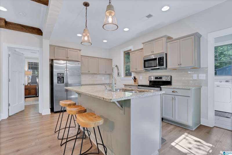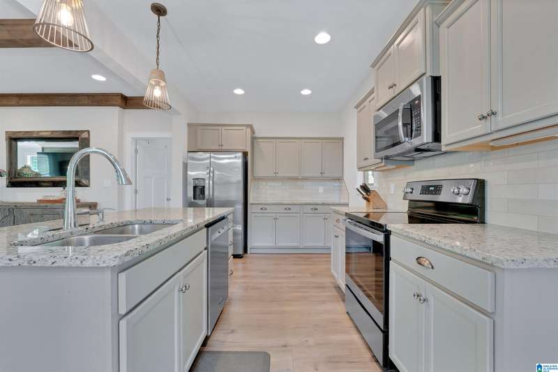 This custom-built 3 bedroom, 2.5 bath home offers 2118 square feet of thoughtfully designed living space with high-end finishes and timeless style. Step into the spacious living room where soaring beamed ceilings and a striking stone fireplace create the perfect gathering space. The open-concept layout flows seamlessly into a dining area, bright, airy kitchen and main level laundry. A tucked-away cozy desk space provides the perfect study, quiet reading nook or bar space. The main-level primary suite is a true retreat, featuring a walk-in closet and a luxurious ensuite bath with a massive walk-in shower. Upstairs, you’ll find two additional bedrooms, a full bath, and a large flex space; perfect for a playroom, media room, or teen hangout. Enjoy a low maintenance, fully fenced in, flat backyard complete with a storage shed. Located less than one mile from Helena Old Town's salon/spa’s, restaurants, brewery, ice cream shop, parks, Buck Creek, and everything else Helena has to offer!