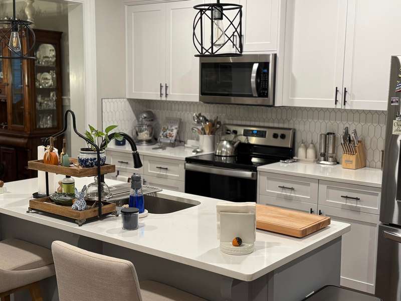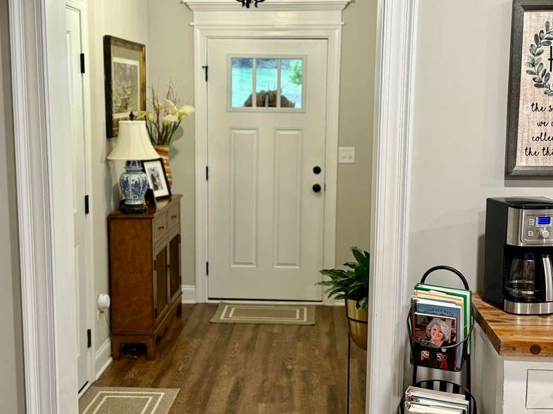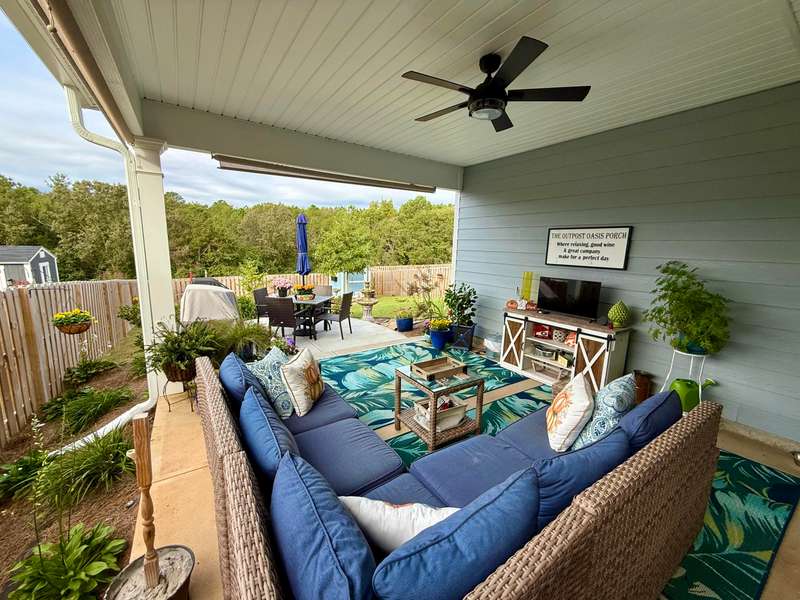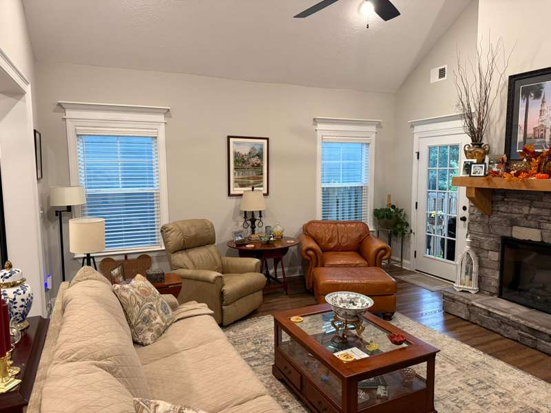 The Newport Plan built by PlanDwell Builders in 2023 is only 2 years old and boasts 1756 square feet. This 3 bedroom 2 bath home with open floor plan offers luxury vinyl plank throughout the living areas, carpet in bedrooms and tile in primary bath. Accents throughout the home feature stone fireplace with cedar mantle, coffered ceilings and accent paneling in the Dining Room. Drop zone built ins with storage in the kitchen area right off the garage entry. Large island with granite countertop is the center of the living area of the home. Perfect for entertaining, the kitchen offers stainless appliances, tile backsplash and wood cabinets. The large primary boasts vaulted ceiling with accent wall and a large en-suite with double vanity, large tiled walk in shower and a large walk in closet. The other 2 bedrooms both have vaulted ceilings with ceiling fans and share a hall bath and large linen closet. Washer, dryer and French door refrigerator stay!! A large covered back porch opens up to a secondary open air patio that overlooks the lushly landscaped backyard that overlooks a natural area with no homes behind you. Storage building on permanent foundation for the outside tools frees up space in the oversized double garage. One level garden homes in Austin Heights have not come on the market often. Get in to see this one today!!!
