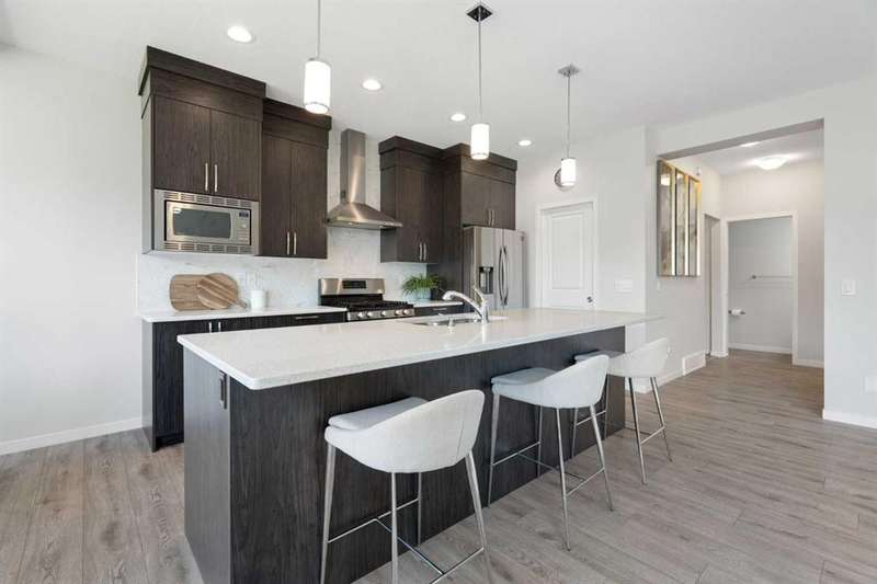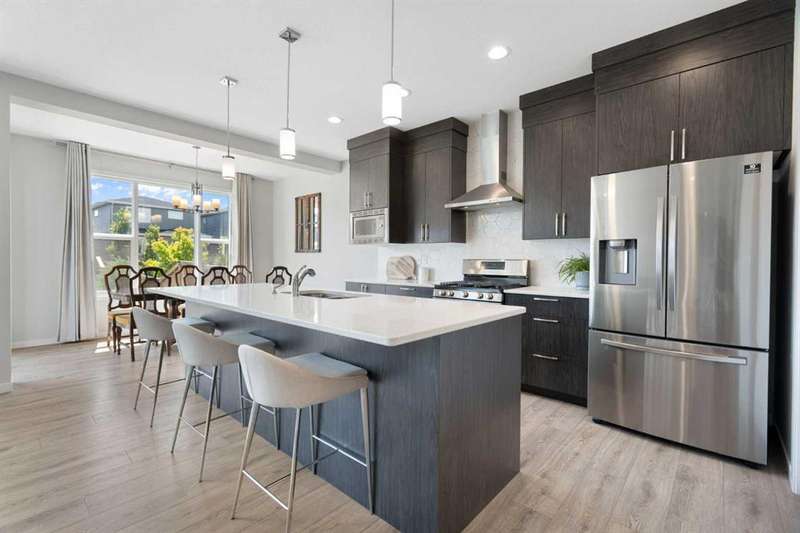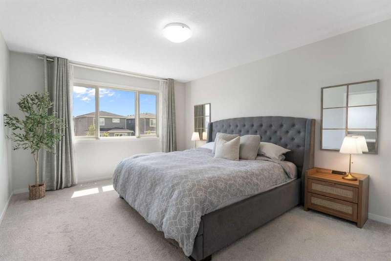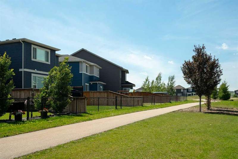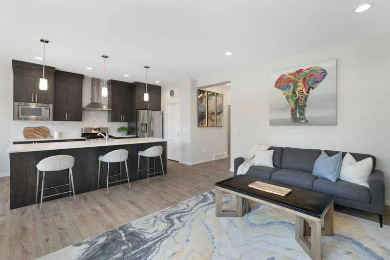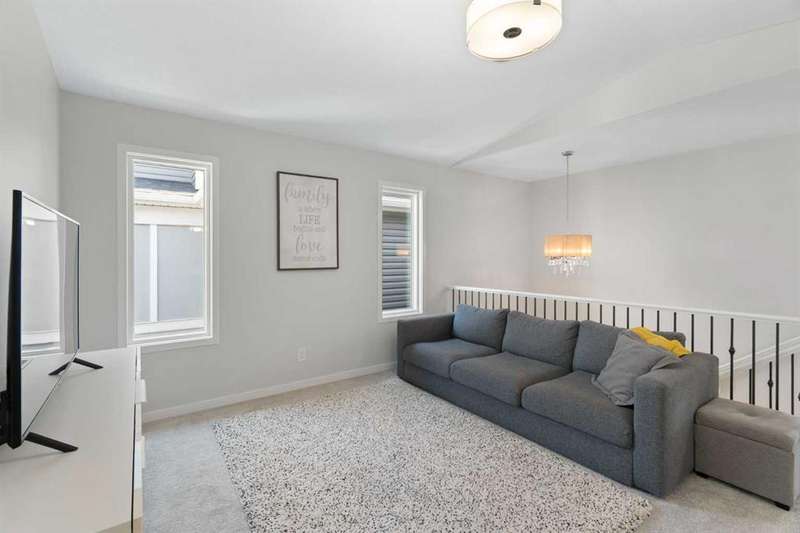 Welcome to 41 Belmont Common, a meticulously maintained home in one of Calgary’s most desirable communities, ideally located backing onto a walking path and just steps from a park—perfect for evening strolls or weekend adventures with the family. This fully finished two-storey offers 2,121 sqft above grade and over 2,800 sqft of total developed space, thoughtfully designed for modern living. The main floor is bathed in natural light with large windows throughout and features a stunning kitchen with full-height cabinetry, a gas stove, sleek quartz countertops, a spacious pantry, and a large island ideal for gatherings. The open concept layout flows seamlessly into the living and dining areas, centered around a cozy tile-surround fireplace. Just down the hall, you’ll find a discreetly tucked-away half bath, as well as a well-organized back boot room with built-in shelving and direct access to the garage. Upstairs offers a bright vaulted bonus room, a handy office nook, two generous bedrooms, and a luxurious primary suite complete with two separate walk-in closets—no need to compromise on space! The fully finished basement continues to impress with a wide open rec area, a beautifully finished bathroom, and a spacious bedroom perfect for guests or a home gym. Additional features include triple-pane windows, a tile fireplace, tankless hot water system, HRV, and a sunny south-facing backyard that fills the home with natural light all day long. This home truly shows pride of ownership and is move-in ready. Reach out to your favourite realtor to book a showing.