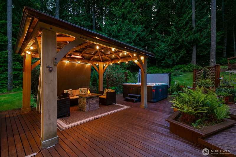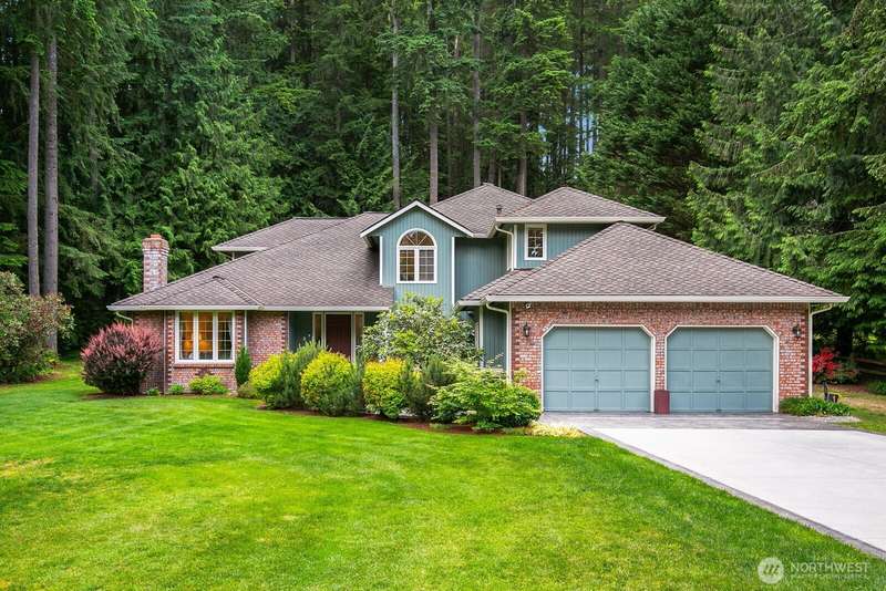 A private, park-like sanctuary on 1.68-acre corner lot with RV parking & no HOA. Inside: New plush carpet throughout, 4 bedrooms plus an office. The remodeled chef’s kitchen features cherry cabinetry & granite counters. Retreat to the spa-style primary with soaking tub, dual rainfall shower, & quartz vanity. Finishes include slate floors, solid wood doors, smart-home tech, & full security. Outdoors, entertain under the heated gazebo, unwind in the six-person spa, gather at the fire pit, or wander trails. Updated tamped concrete bordered driveway & generator wiring complete the package. Minutes to Woodinville wineries, dining, shopping, trails, Northshore schools, & freeway access; Pre-inspected with a home 1 year warranty (septic included)