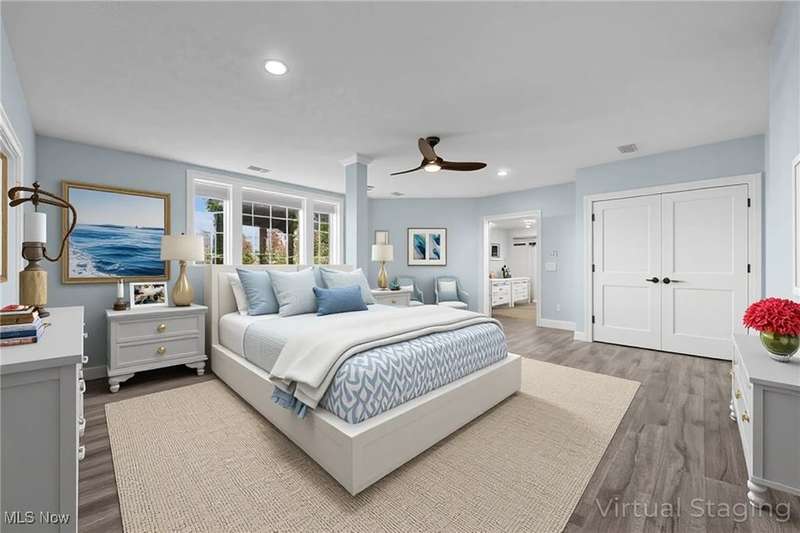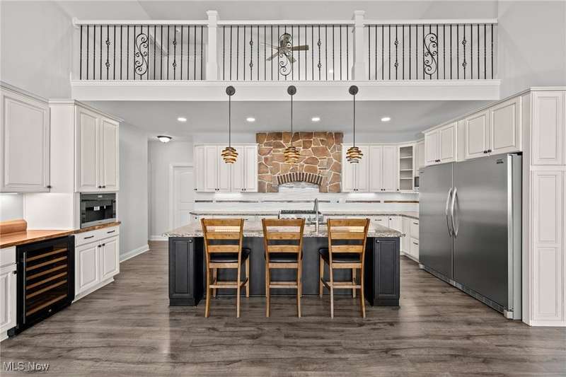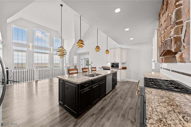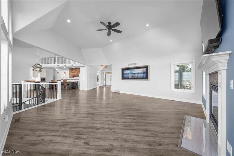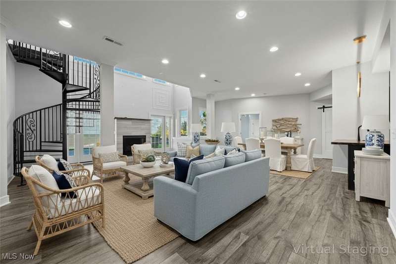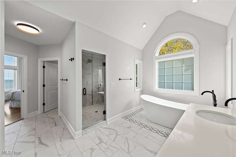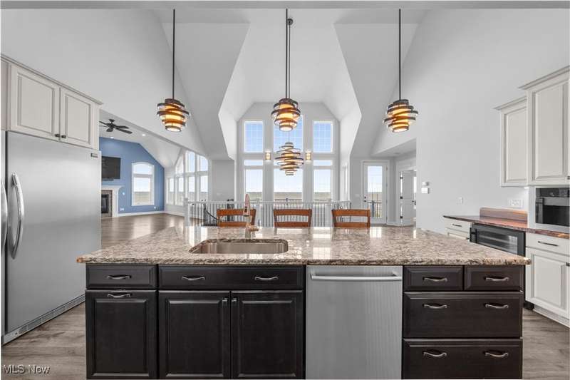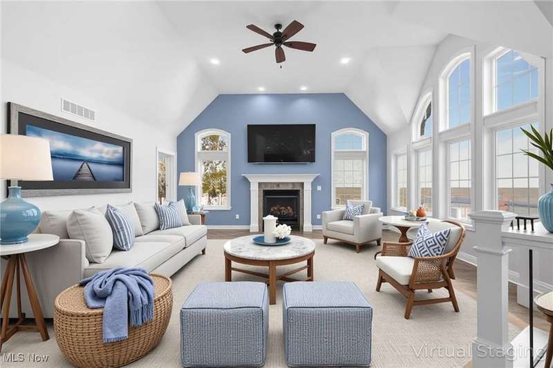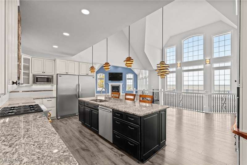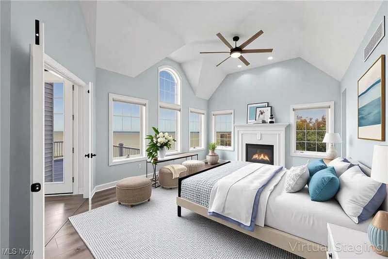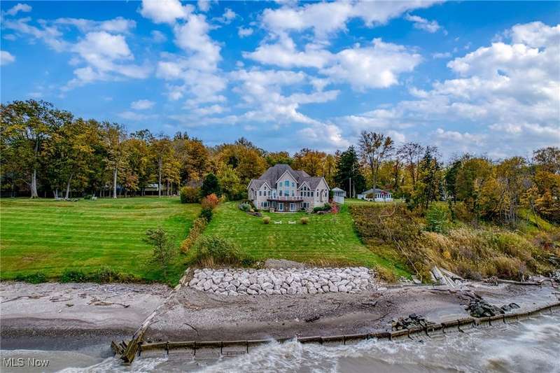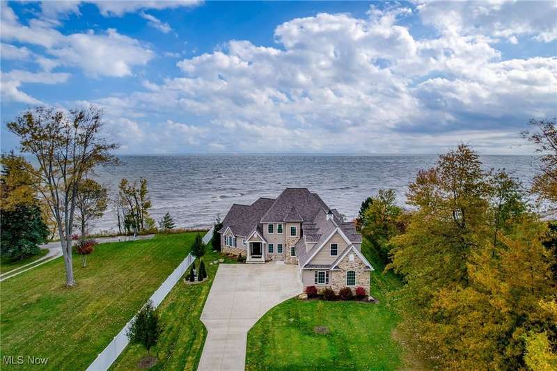 Prepare to be captivated by this stunning lakefront paradise! Set on nearly an acre with direct beachfront access, this property offers breathtaking panoramic views of Lake Erie. At the heart of this exquisite home is a two-story great room, featuring a soaring vaulted ceiling, a cozy fireplace, and a wall of windows that beautifully frame the idyllic lake scenery. This space flows effortlessly into the dining area - dream kitchen, which is equipped with a center island, stainless steel appliances, granite countertops, a coffee station, and a striking custom stone range hood. The primary suite, conveniently located on the main floor, showcases a charming fireplace and stunning lake views. The primary bathroom serves as a spa-like retreat, complete with a spacious walk-in shower, a soaking tub, and a dual-sink vanity. It also includes a large walk-through closet that exits to the back hall. Also featured on the main floor are two additional bedrooms - one which can be used as an office, another full bathroom, a pantry with dual access from the hallway or garage, and a spacious mudroom with laundry closet. Ascending to the upper level, you will find a generous bonus room/bedroom featuring two walk-in closets. On this level there is also a full bath, built-in library, and cozy loft that captures the remarkable lake views. The lower level is a recreational haven, perfect for hosting or just relaxing. There's a family room adorned with a gas fireplace, a kitchen/bar area with custom walnut countertops, and a temperature-controlled walk-in wine room. There are two bedrooms ? both with lake views, a full bath with a walk-in tile shower, and an exercise room. The covered patio, yard, and beach can be directly accessed from the family room. Summers will be a delight on the expansive deck and patio that overlook the lake. This property truly offers an extraordinary lifestyle! Experience sunsets like never before!