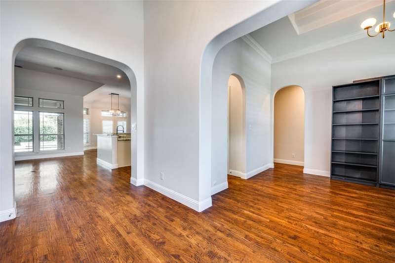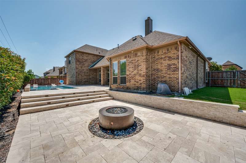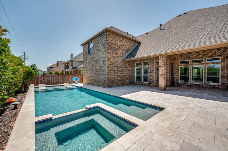 Discover luxurious living in this rare one and a half story Gallery Custom Home, perfectly situated on a one-third acre estate lot in the highly sought-after La Cima subdivision of Prosper. Built in 2016, this stunning home offers an ideal layout with all bedrooms on the main level, including a private and spacious primary suite featuring dual Texas-sized walk-in closets. The chefs kitchen is the heart of the home, showcasing double ovens, a gas cooktop, a custom vent hood, and an abundance of custom cabinetry, butlers pantry and prep spaceperfect for entertaining and everyday living. The open-concept design seamlessly connects the kitchen, breakfast area, and main living space, all overlooking the expansive backyard. A formal dining room and a private office or optional fifth bedroom or downstairs media room add versatility to the floor plan. Upstairs, a generous game room and dedicated media room with a half bath and oversized storage closet provide the perfect space for entertainment, play, or movie nights. The secondary bedrooms are well-appointed and thoughtfully split from the primary suite, ensuring privacy for guests or family members. Step outside into your own private backyard retreat, complete with a sparkling pool and spa, built-in fire pit, lush green space, and an extended covered patioideal for outdoor dining, lounging, and enjoying peaceful evenings under the Texas sky. Additional highlights include beautiful architectural details, ample storage throughout, and a three-car garage. Located just north of Hwy 380, this home offers easy access to the Dallas North Tollway, top-rated Prosper ISD schools, and a wealth of shopping, dining, and entertainment options nearby. A rare opportunity to own a beautifully maintained estate in a prime location!