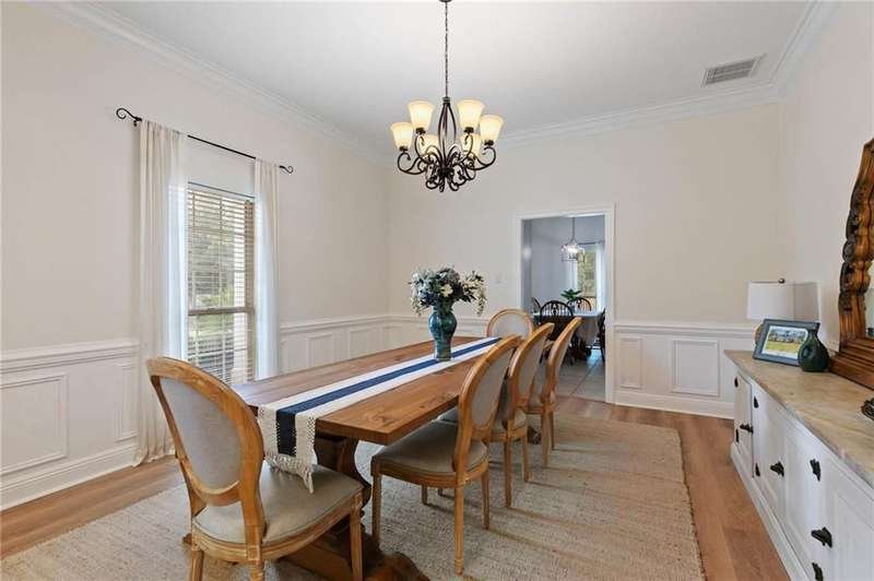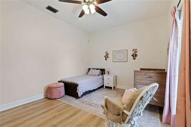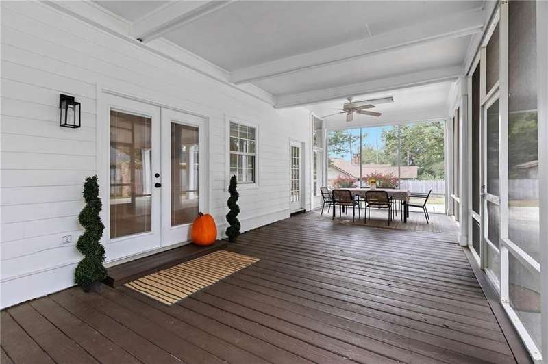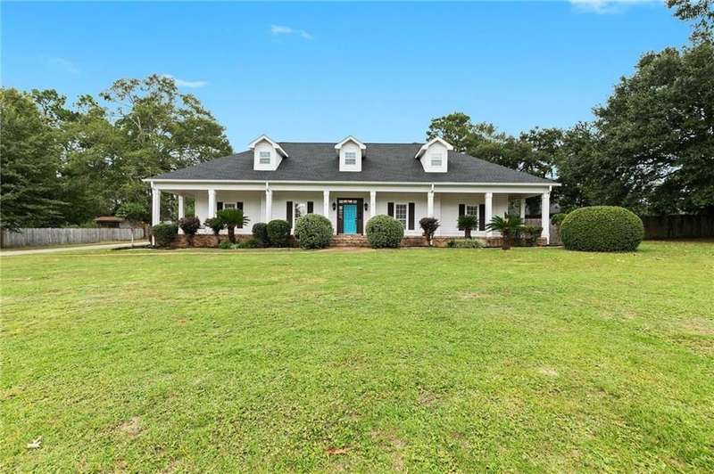 Perfectly situated on over half an acre, this 5-bedroom, 3-bath traditional beauty offers right at 3500 square feet of space designed for both family living and entertaining. From the moment you arrive, the lush landscaping and wrap-around porch invite you to slow down and stay awhile.Inside, brand-new blonde luxury vinyl plank floors anchor the freshly updated main level, while new carpet upstairs keeps things cozy. The formal dining room is large enough to host any gathering, and the chef?s kitchen, which was remodeled in 2020 & boasts stone countertops, custom cabinetry, and endless storage.Upstairs you?ll find 2 spacious bedrooms and a versatile media room/or another bedroom, perfect for movie nights. The primary suite opens to a stunning 15x23 sunroom, creating a private retreat that overlooks the fully fenced backyard. the 4th bedroom is also located downstairs.Enjoy year-round relaxation on the 12x44 screened-in porch, ideal for morning coffee or evening get-togethers. With a new roof (2022), two new HVAC units (2023), and a complete replumb (2024), this home blends timeless traditional character with the peace of mind of modern updates. And here?s the kicker with an active HOA there are no dues required. Homes like this don?t come around often.Perfectly situated for convenience and coastal living, this home offers quick access to I-10 for an easy commute to Mobile or Pensacola. You?re just minutes from Jubilee Square, Eastern Shore Centre, and Old Town Daphne, where shopping, dining, and entertainment abound. And when it?s time to unwind, the beautiful beaches of the Gulf Coast are only a short drive away. Buyer to verify all information during due diligence.