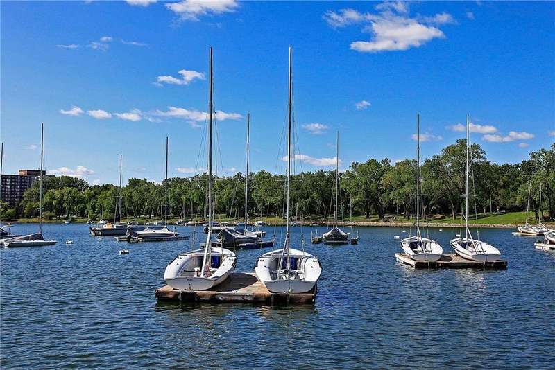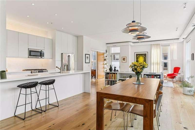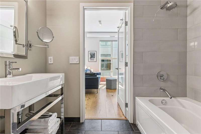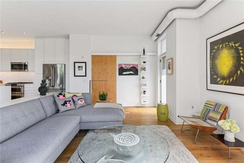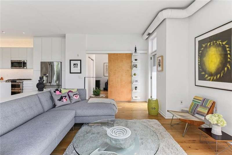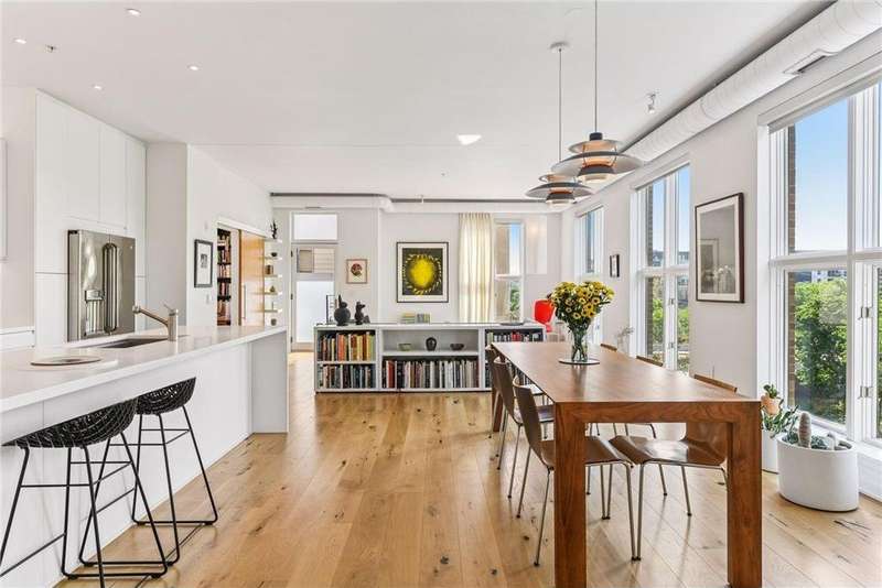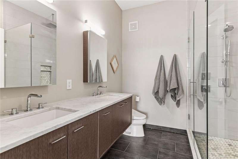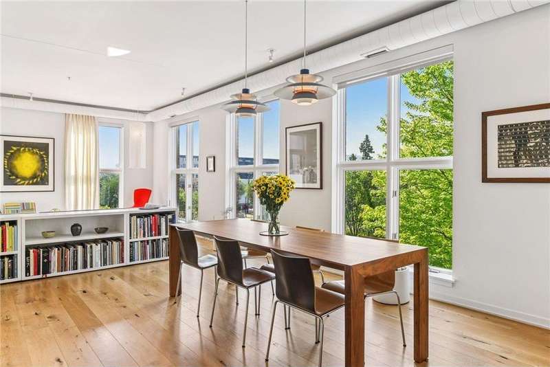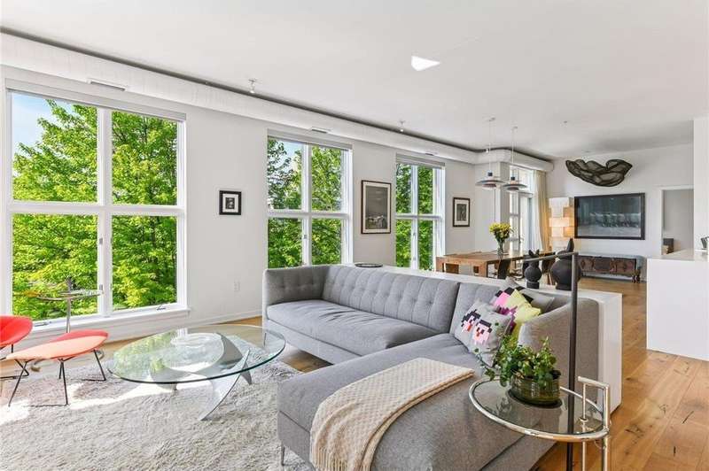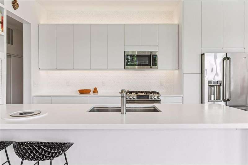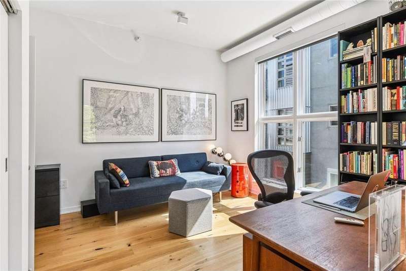 Welcome to one of the most coveted floor plans at the green-inspired Midtown Lofts — where architectural vision meets artistic expression. This sun-drenched, south-facing corner unit overlooks the Midtown Greenway and features two private balconies, including one with a gas hookup — perfect for grilling or unwinding above the treetops. Inside, a bright, open layout is anchored by soaring 10-foot ceilings and sweeping walls of oversized windows fitted with wireless shades. Updated White Oak wide-plank engineered hardwood floors add warmth and drama throughout. The architect-redesigned kitchen impresses with white cabinetry, a striking herringbone marble backsplash, sleek Corian countertops, and an oversized entertainer’s island. A stylish butler’s pantry — with additional storage and a wine fridge — adds both function and flair. Curated artistic lighting elevates the experience: a sculptural Noguchi chandelier in the living room, iconic Louis Poulsen pendants in the dining area, Philips Hue smart lighting in select spaces, and clean-lined recessed lighting added to the kitchen, entryway, and primary suite. The serene, spa-inspired primary suite features a Kohler rain shower, elegant tilework, a floating vanity with Carrara marble, and intelligent storage. The guest bath is equally refined, with designer tile, updated fixtures, chic lighting, and vanities that look straight from a Restoration Hardware showroom. Amenities include a semi-private courtyard, car wash area, dog run, and herb garden. Solar panels and zoned LED garage lighting help reduce common area energy costs, keeping dues refreshingly low while supporting sustainable living. Midtown Lofts is perched above the beloved Midtown Greenway, a scenic rails-to-trails corridor stretching from the Mississippi River to the Chain of Lakes. It’s a dream location for cyclists, runners, and nature lovers who crave easy access to the outdoors without sacrificing city living. Just steps from lively pubs, restaurants, shops, and transit — and boasting Walk and Bike Scores of 96 and 94, a Walker’s & Biker’s Paradise. Enjoy added peace of mind with a brand new furnace (2025) and a one-year home warranty included in the sale!