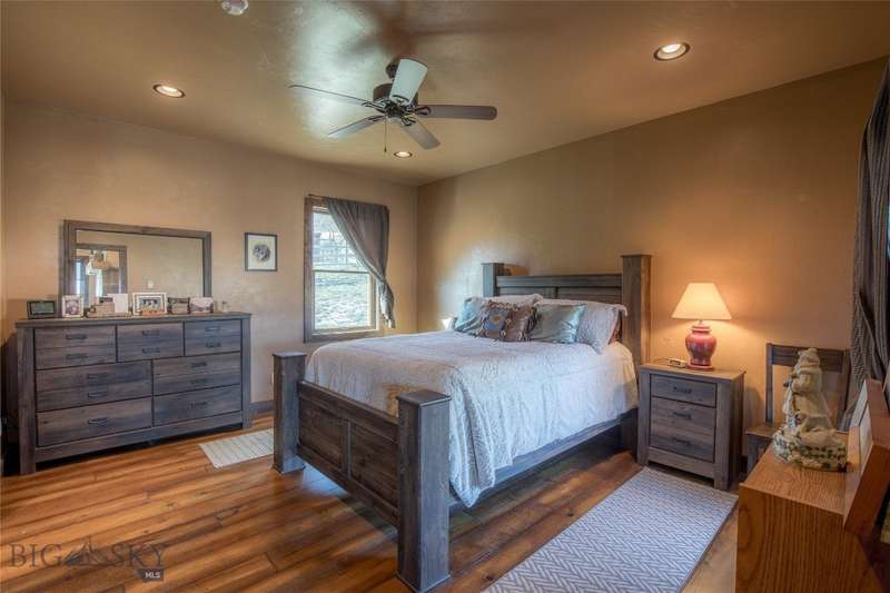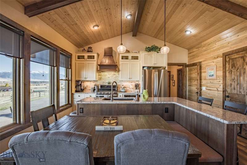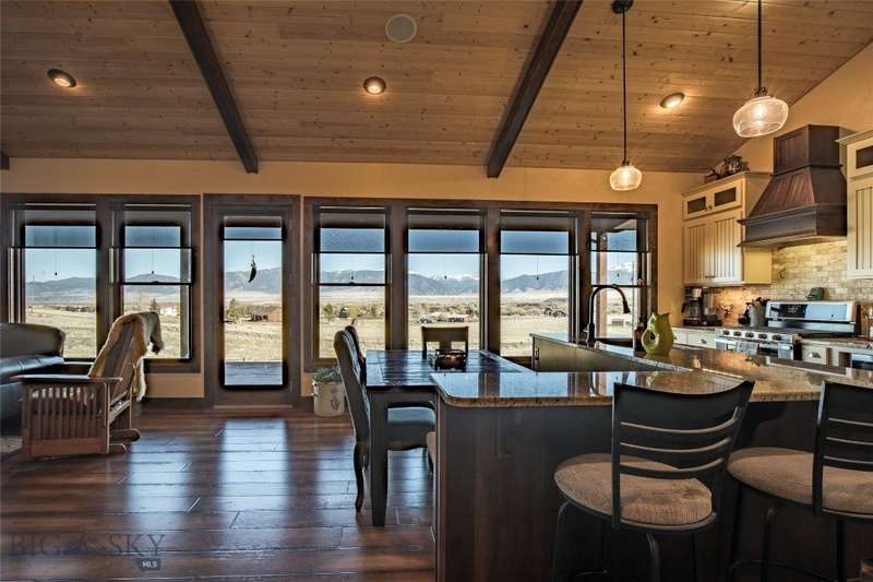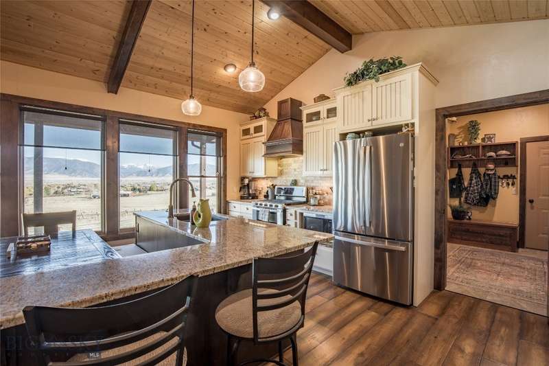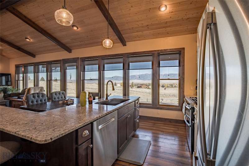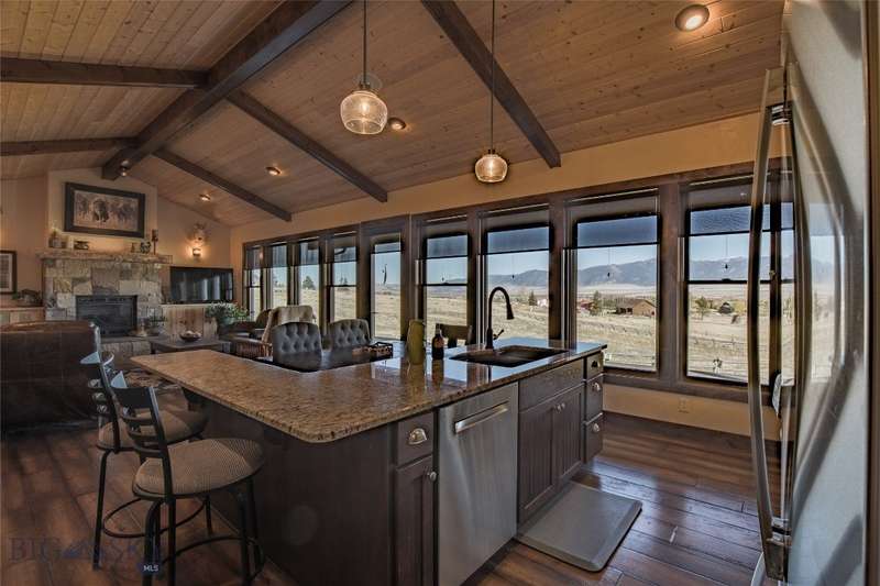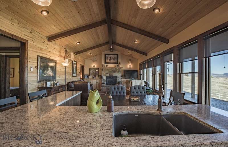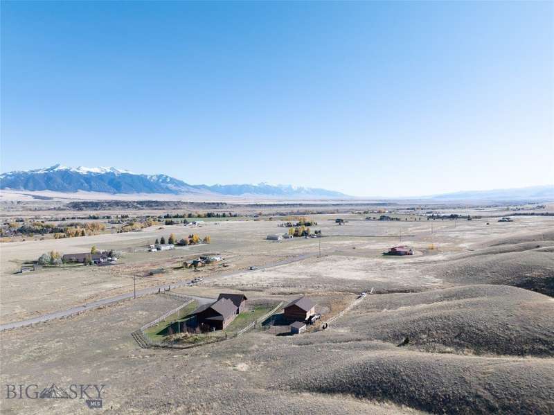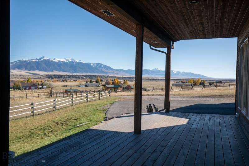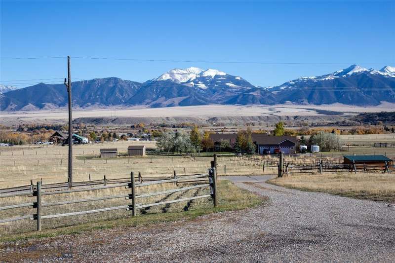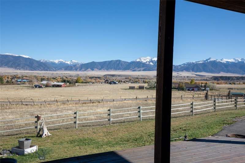 Tidy and well-maintained 6.2-acre horse property with sweeping views from Ennis Lake to the Montana border. Located just five minutes from downtown Ennis, this property offers privacy, space, and a quiet setting overlooking town. Mild covenants govern the Elkhorn Subdivision, but there is no HOA or dues. Built in 2015, the home features an efficient layout with an open kitchen and living area, large entryway, and laundry room. The primary suite includes a walk-in closet and bright bath with tiled shower and soaking tub. A guest bedroom and second bath complete the main living area. Radiant in-floor heat, a propane stove, and a propane fireplace add warmth and comfort throughout. Large windows and a sweeping deck frame the expansive valley and mountain views, bringing the landscape into daily living. The home sits back from the road for privacy, is perimeter fenced, and recently received several upgrades including fresh exterior stain (2024), a new lawn irrigation system, new asphalt apron at the attached two-car garage, and a newly built 20'x30' shop with concrete floor and 10' door. Frequent visits from local antelope and deer add to the natural beauty of this Montana property. Ideal for horse owners or anyone seeking a quiet setting close to town with extraordinary views.