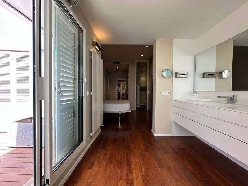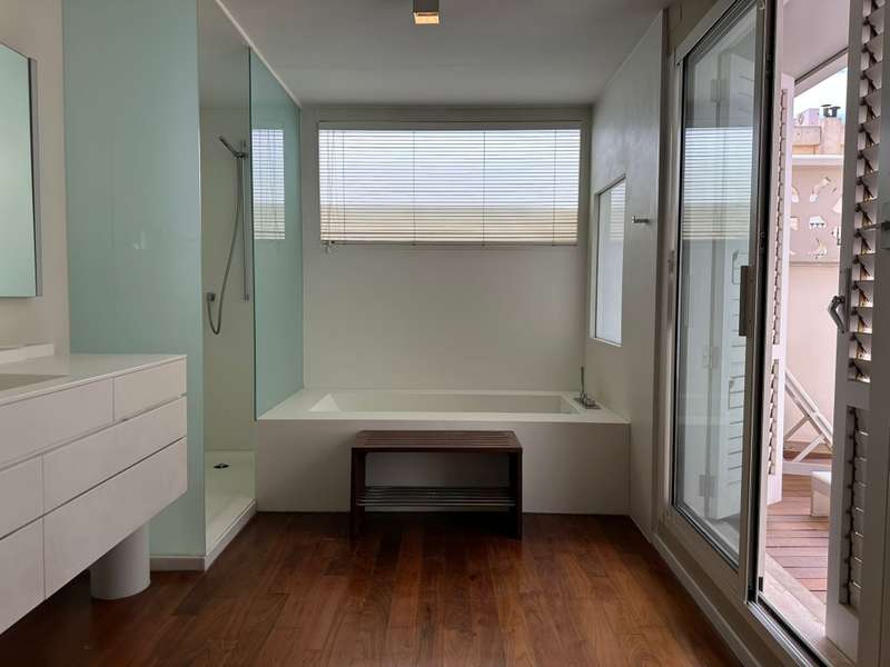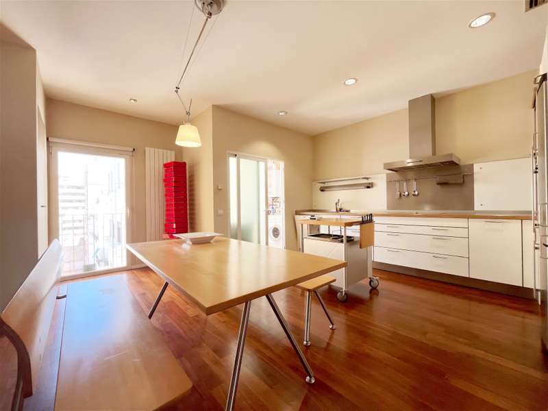 Located in one of the most sought-after areas of Valencia's Eixample, just a few meters from the Mercado de Colón, this penthouse represents a real real estate gem: spaciousness, design and a unique terrace in the heart of the city. With 163 m² built, the property stands out for its impeccable distribution and a spectacular terrace of approximately 50 m² facing the emblematic Cirilo Amorós street. An outdoor space difficult to find in this location, perfect to enjoy the Mediterranean climate throughout the year. The main living room, spacious and bright, opens directly onto the terrace, creating a seamless connection between indoors and outdoors. The kitchen, designed by the prestigious firm Bulthaup, combines functionality and style, becoming one of the most special corners of the house. The night area has three bedrooms. The master bedroom is a real suite, with a large dressing room, bathroom with bathtub and shower, and direct access to the terrace. A second double bedroom, a third single bedroom and a second bathroom with shower complete the house. It also includes a parking space in the same building, which adds value and comfort to an already exceptional property. A penthouse with clean lines, generous spaces and careful details, ideal for those looking for quality of life in one of the best locations in Valencia.