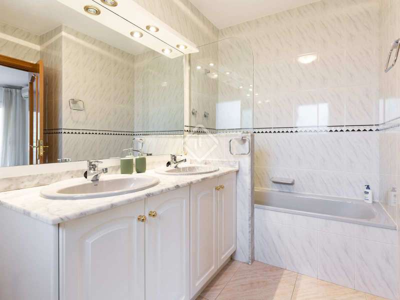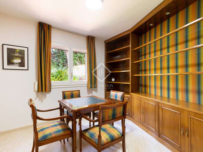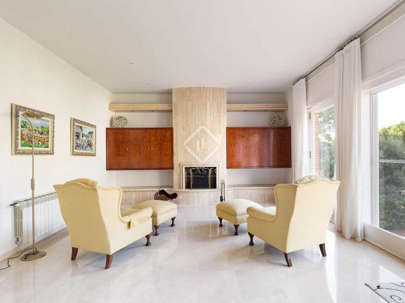 This large single-family villa with exposed brick has an idyllic location, surrounded by nature and a few minutes from the beach of Castelldefels. It enjoys beautiful views, a swimming pool, several terraces, a garage for 5 cars and offers plenty of natural light during the day. The house has an area of 416 m² and sits on a 1,000 m² plot. It is distributed in three comfortable floors, plus the semi-basement floor. On the ground floor we access the hall, which connects with a spacious or two-room living-dining room with fireplace and high ceilings and direct access to the terrace with chill-out area, garden, barbecue area and pool. On the same floor we also find a spacious, recently renovated and fully equipped kitchen, a bedroom with its private bathroom with a bathtub, the games room or office, and a toilet. The first floor offers two double bedrooms, each with its own private bathroom and access to the terrace with magnificent panoramic views. On the second floor we find another two double bedrooms and a full bathroom with a shower. The semi-basement floor has the water and ironing area, a service bedroom, a full bathroom and access to the car park with capacity for five cars. This beautiful house has high quality finishes, marble floors, high ceilings, heating and air conditioning, alarm system and fitted wardrobes. This house would be ideal for families looking for a cozy, bright and comfortable house in a quiet and safe environment, just a few minutes from the beach and international schools, the airport and the city of Barcelona.