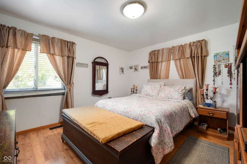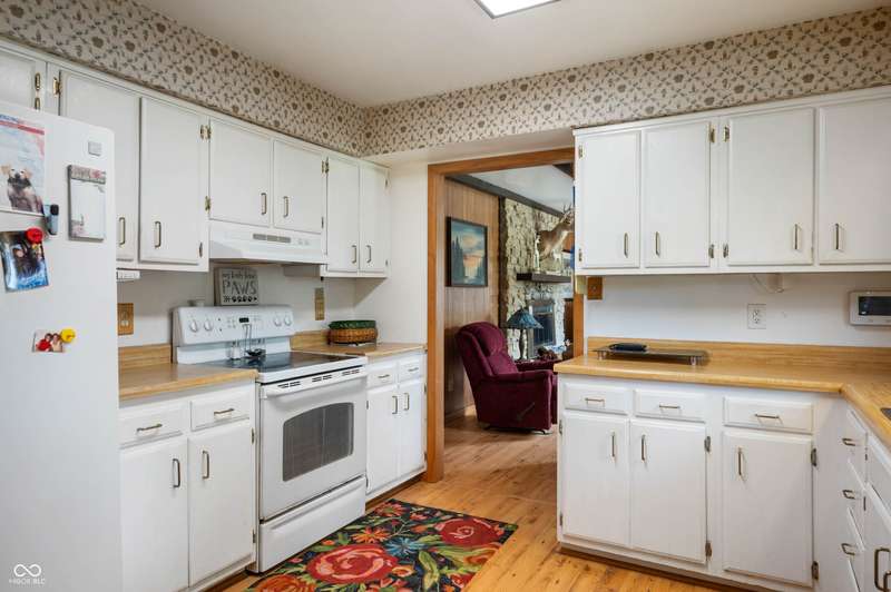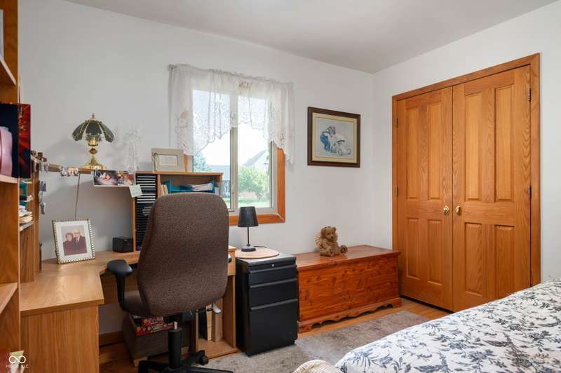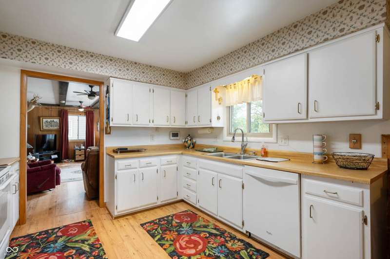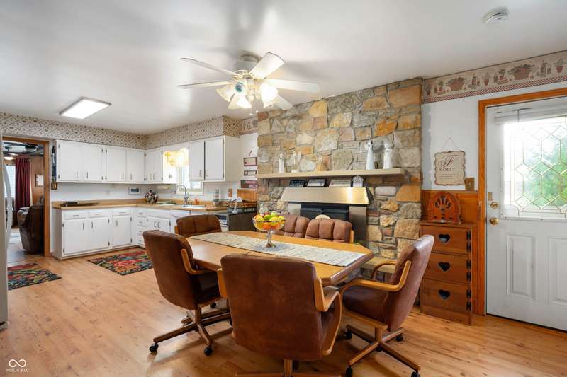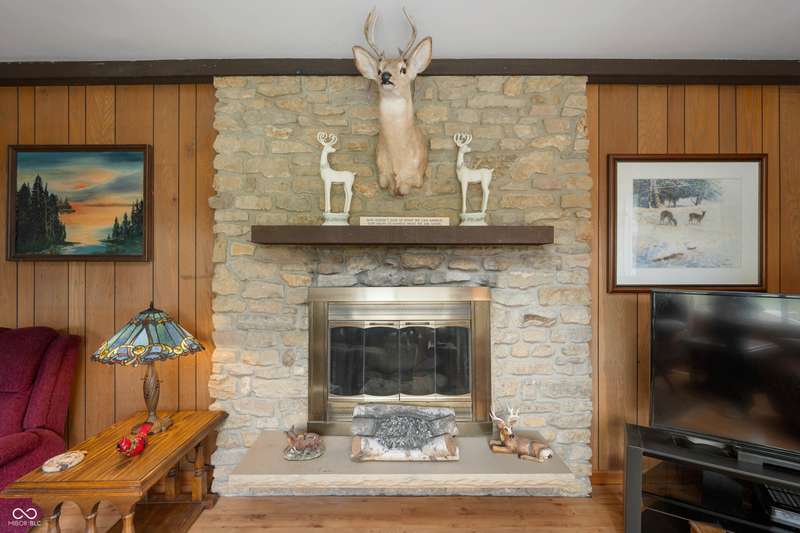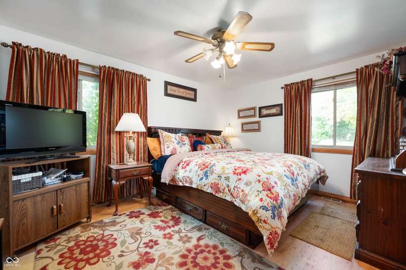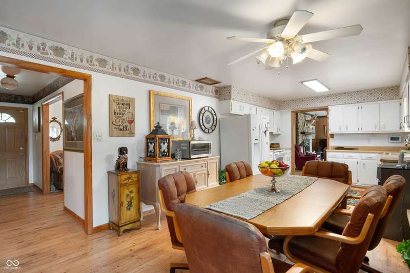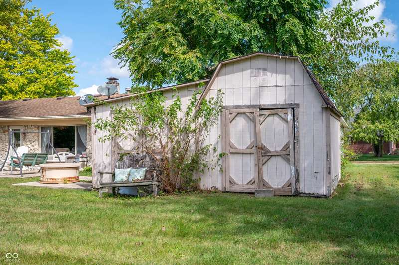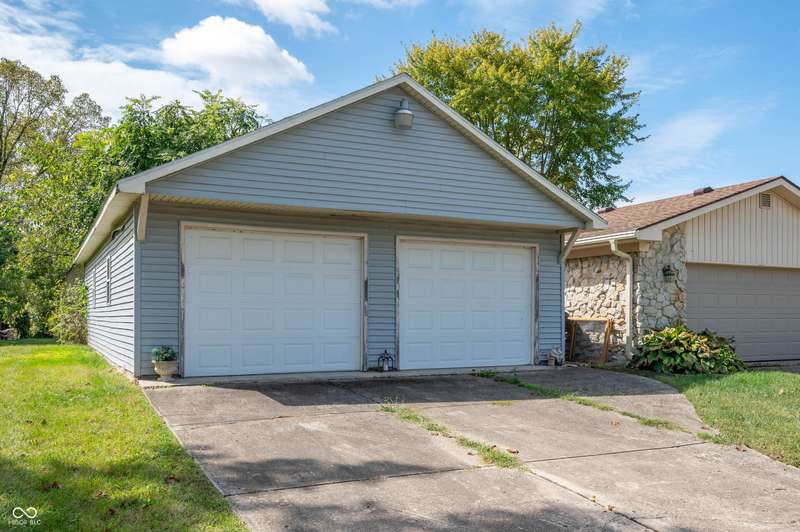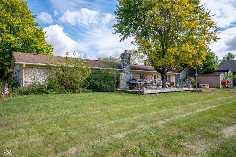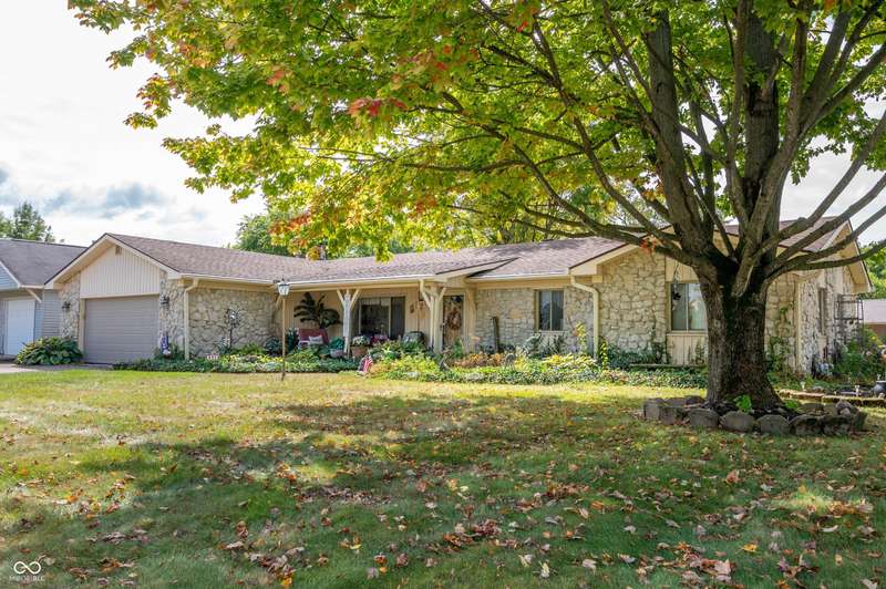 LOCATION, LOCATION, LOCATION...4+ car garage/workshop space with multiple driveways and NO HOA. Walking distance to downtown Fortville is a 3 bedroom, 2 bath, Ranch, on a pond with a dock, and all situated on a half an acre. Enjoy the outdoor landscape on the covered front porch or back wooded deck steps away from the neighborhood pond. Jump in the paddle boat and kick those feet around the 2 ponds separated by a "old" covered bridge in the desirable Old Bridge neighborhood. Gutters were replaced just a few years ago along with an additional heater in the workshop garage.