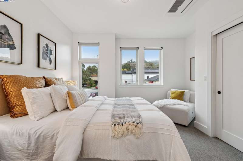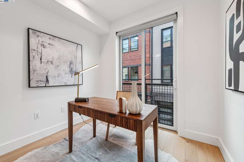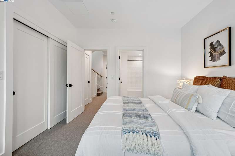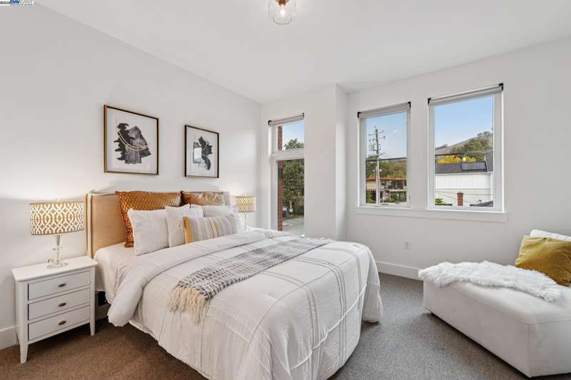 Experience modern luxury & everyday comfort at The Mill on Brown, one of Lafayette’s most desirable newer communities. Built in 2022, this beautifully designed townhouse-style condo offers 2 bedrooms, 2.5 baths, a dedicated office or flex room (possible 3rd bedroom), an attached 2-car garage & a private rooftop deck with panoramic views. The main level features an open & airy floor plan w/spacious living & dining areas, a sleek modern kitchen, laundry, office & 1/2 bath. Upstairs are 2 ensuite bedrooms, including a luxurious primary suite w/his-and-hers walk-in closets & a stylish bathroom. The kitchen impresses w/custom white oak cabinetry, quartz countertops, stainless steel appliances, a gas range, farmhouse-style sink, beautiful backsplash & built-in wine storage. Designer touches include wide-plank engineered hardwood floors, smooth-finish walls, modern lighting, remote-controlled custom shades & energy-efficient dual-pane Andersen windows. Additional highlights: tankless water heater & a garage pre-plumbed for an EV charger. Enjoy the best of Lafayette living—just steps from popular restaurants, brewery, cafés, shops, Whole Foods. Near Lafayette Reservoir, hiking trails, BART, freeway & top-rated schools. Convenient, contemporary living in a charming suburban setting!
