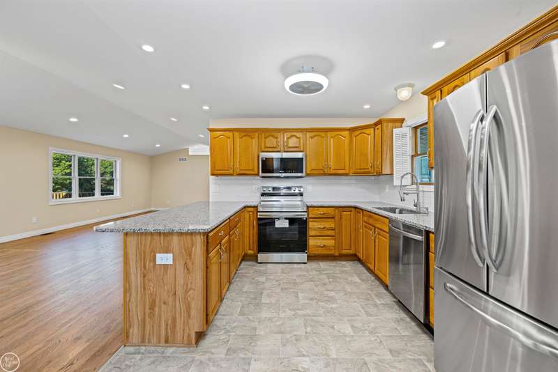 Impressive Ranch with open layout and a great floorplan, 5 acres, 2 barns and corral fencing. Beautiful kitchen with granite counter tops, good working space and opens to dinning/living room. All bedrooms are spacious, primary bedroom with private bath and walk in closet. Beautiful move in condition home! Yard has some nice landscaping features, 30x16 deck and 2 barns 1800 and 900 square feet. Larger barn has been set up for partial horse stable. Basement has 10 foot ceilings, 4th bedroom and a prepped bathroom with toilet and whirlpool tub. Possible partial walkout.