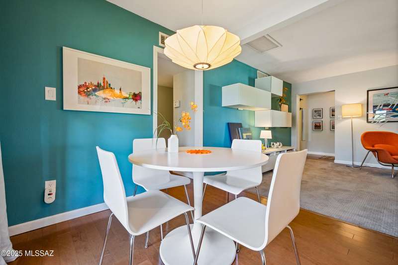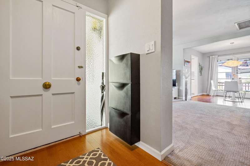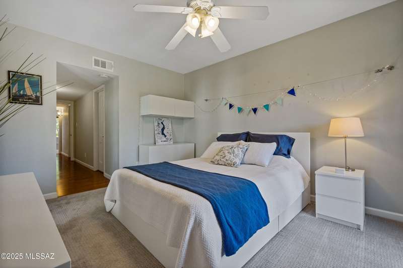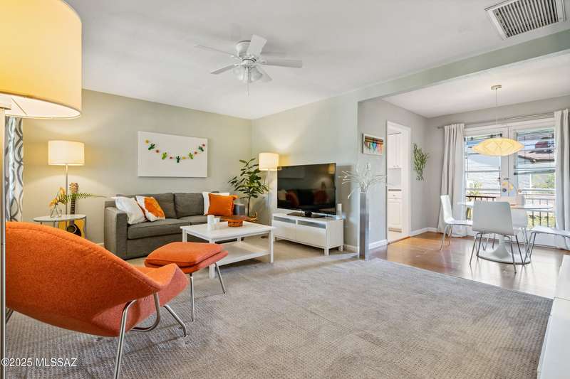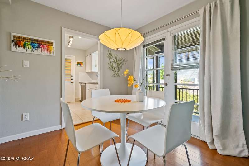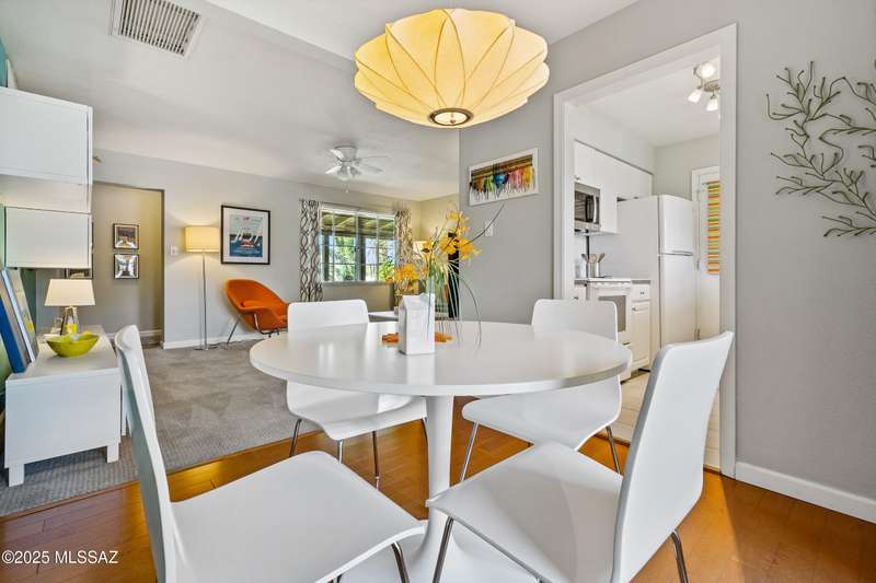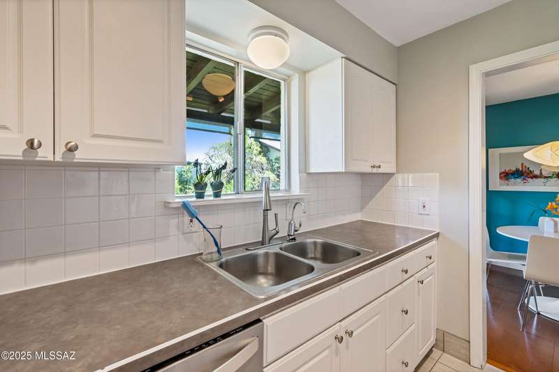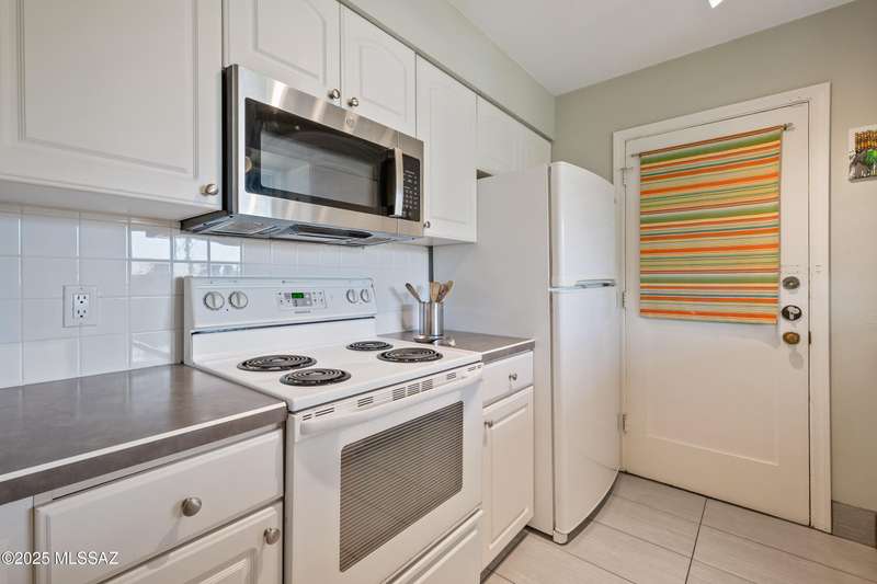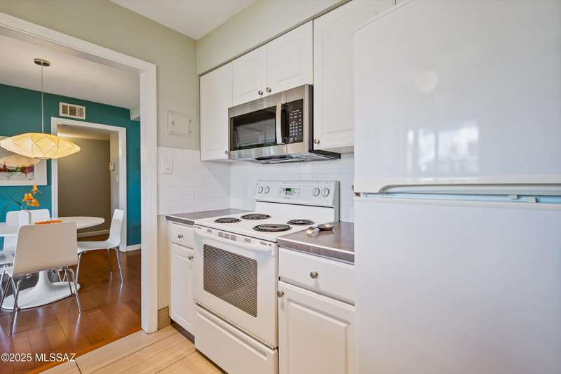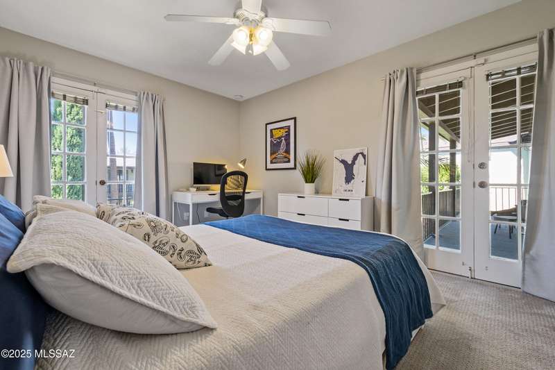 Lovely 2-bedroom condo located in Sam Hughes historic complex El Encanto Apartments. Unit oozes with character, natural lighting, and warmth, and is located on the 2nd floor with private patios offering mountain, lush landscaping and sunset views. Complex is a short commute to the University of Arizona, Banner Medical and downtown. Short walk to popular eateries. Newer flooring, roof, plumbing and patio carpet. HOA includes water, sewer, trash, roof, exterior building and landscape maintenance, termite, pool, and laundry facility. Unit has exterior storage ''12'', one covered parking place ''H'', and bike storage and rack. Low property taxes due to historical property designation.