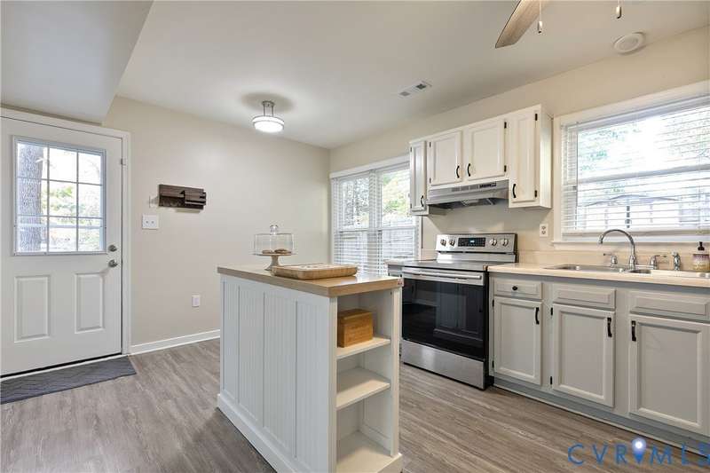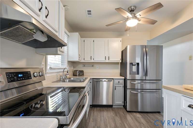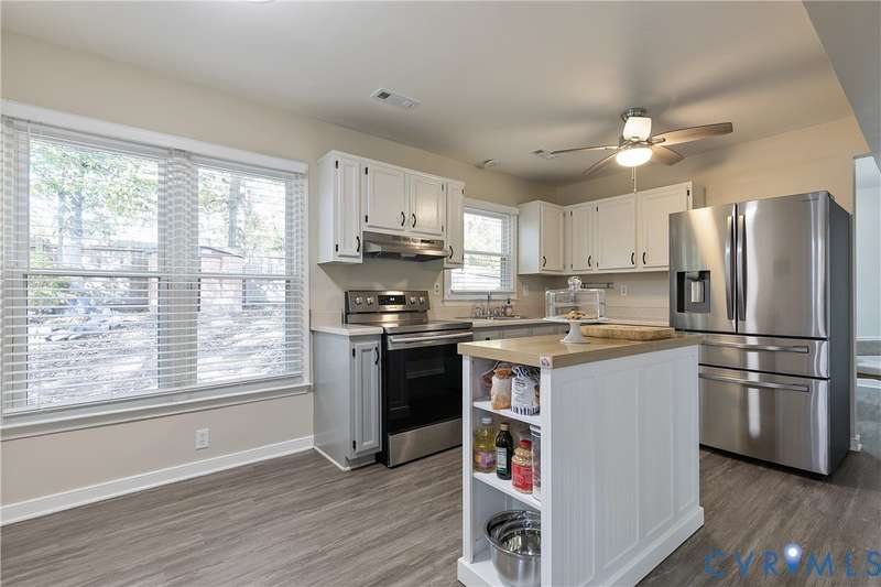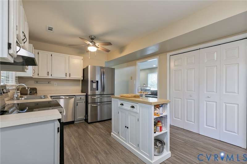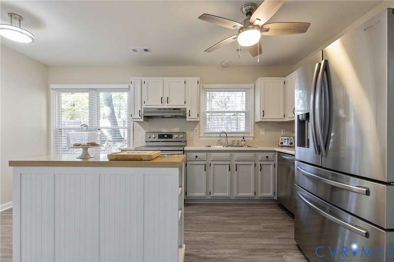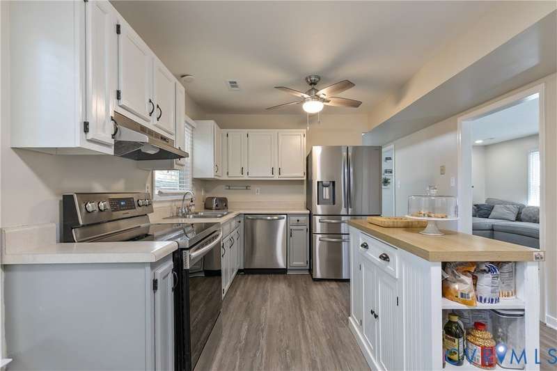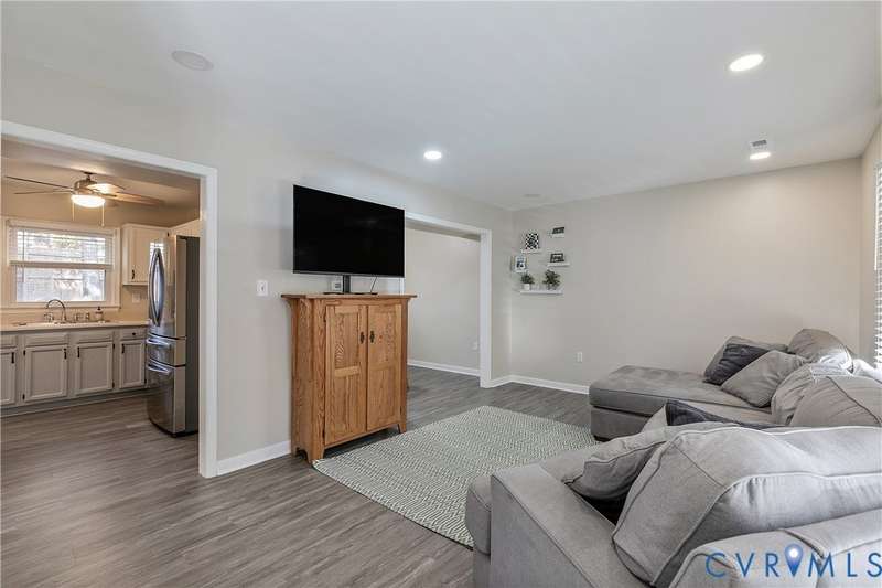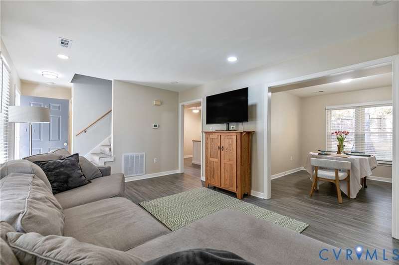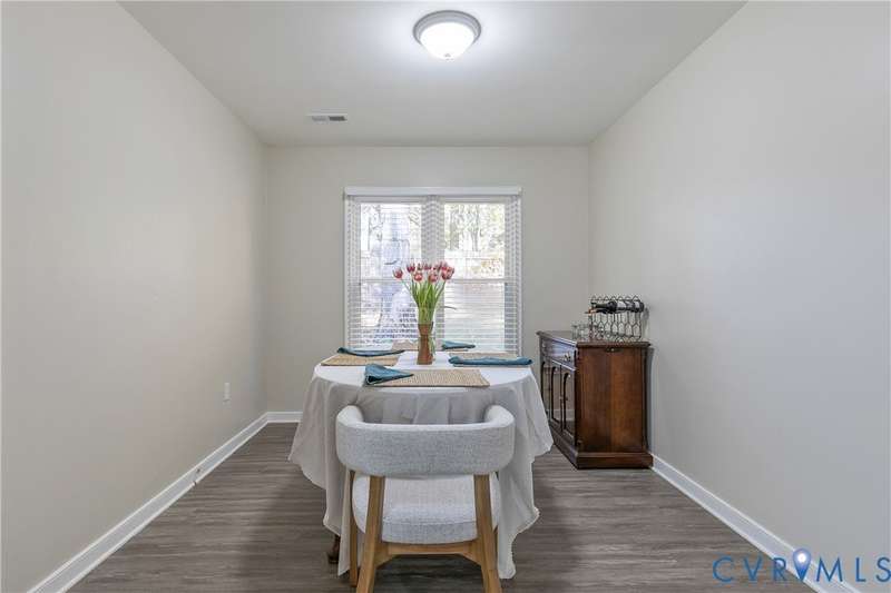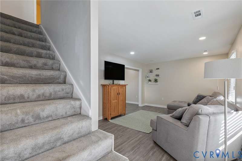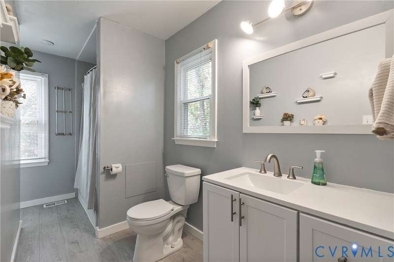 Welcome to this beautiful 3-bedroom, 1.5-bath home that perfectly combines comfort, style, and convenience. The open-concept living area offers a spacious and inviting layout ideal for both everyday living and entertaining. The first floor features neutral paint and luxury vinyl plank flooring (2020), while the updated kitchen showcases white and gray cabinetry with stainless steel appliances. Both bathrooms were tastefully renovated in 2022, adding a fresh, modern touch. Upstairs, you'll find a generous primary bedroom with double closets and two additional bedrooms. Outside, the home features low-maintenance vinyl siding, a charming front porch, and a privacy-fenced backyard-ideal for relaxing or hosting gatherings. Located in a peaceful neighborhood with easy access to Powhite Parkway and Route 288, commuting and exploring nearby amenities couldn't be easier. This home truly offers the best of both worlds-tranquil living with convenient access to everything you need. Schedule your showing today!