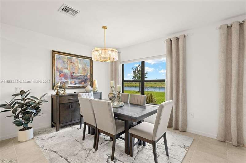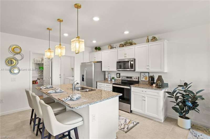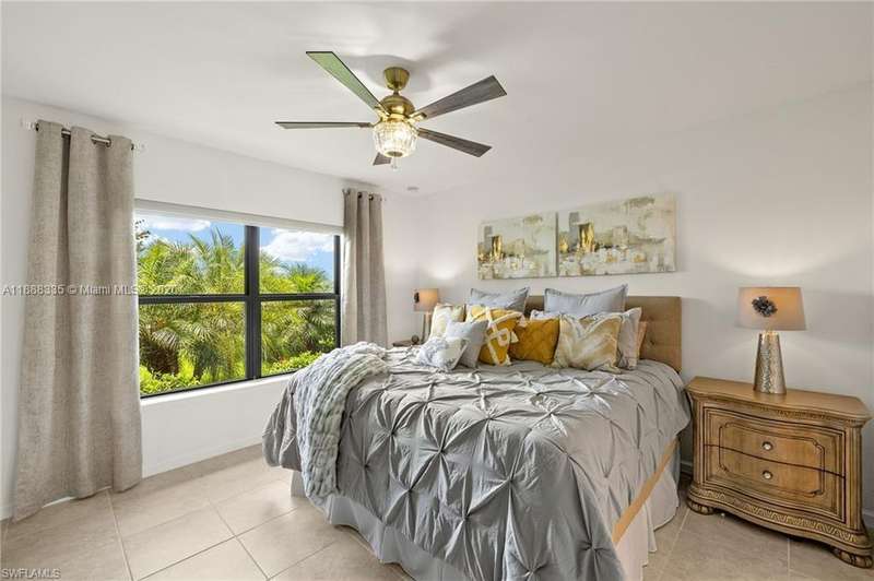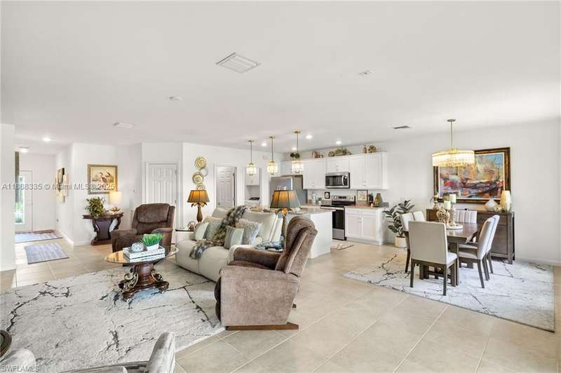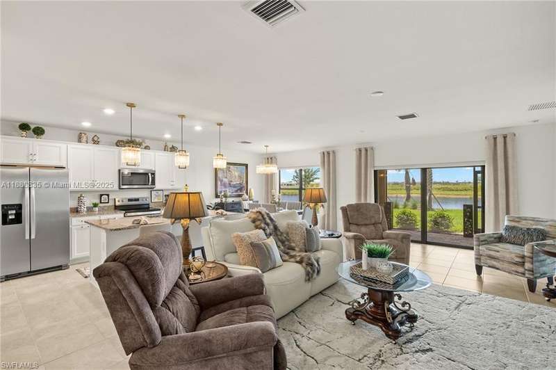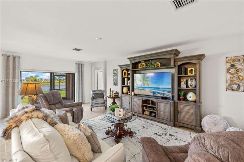 Unbelievable fully furnished turn-key Dolce model with 3 bedrooms, 2 baths, elegant furnishings, and a $13k golf cart! Home offers split floor plan, tiled living areas, luxury light fixtures, wall art, rugs, powered loveseat, recliners, power shades, ceiling fans, dining set, and full bedroom suites with king and twin beds on power bases. Perfect winter retreat!Located in Del Webb Naples, a premier 55+ resort community, residents enjoy two clubhouses with 30,000+ sq. ft. of amenities—resort-style pools, fitness center, movement studio, golf simulator, fire pit lounge, and on-site dining. Outdoor fun includes optional 18-hole golf, 12 pickleball courts, tennis, bocce, garden, and miles of trails. With endless activities and events, Del Webb offers the ultimate active adult lifestyle.