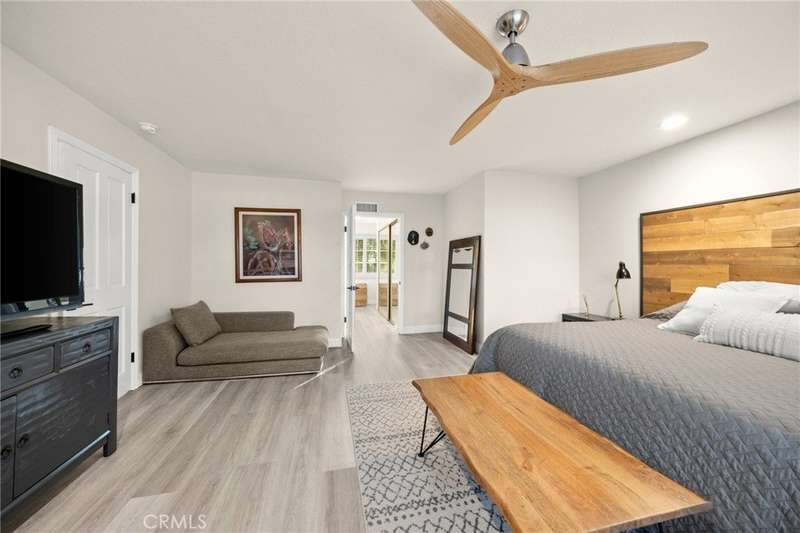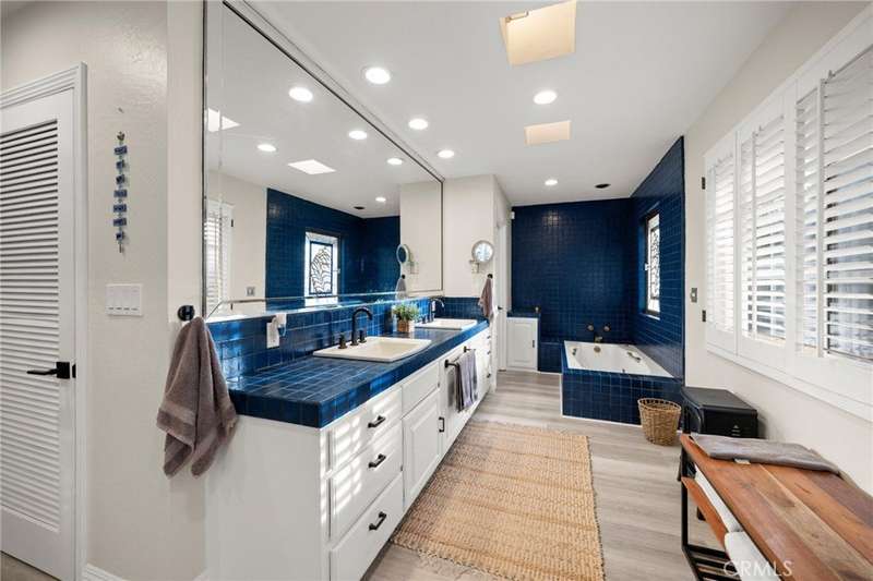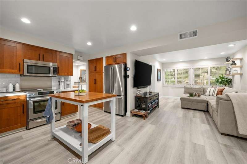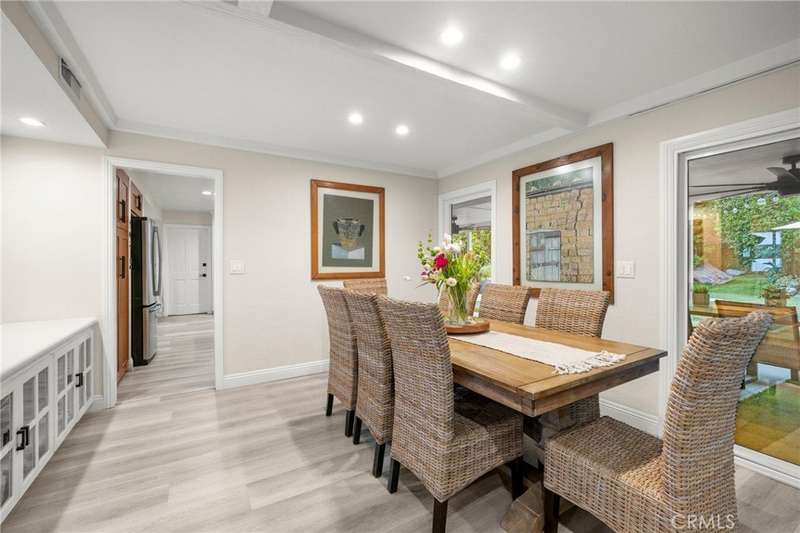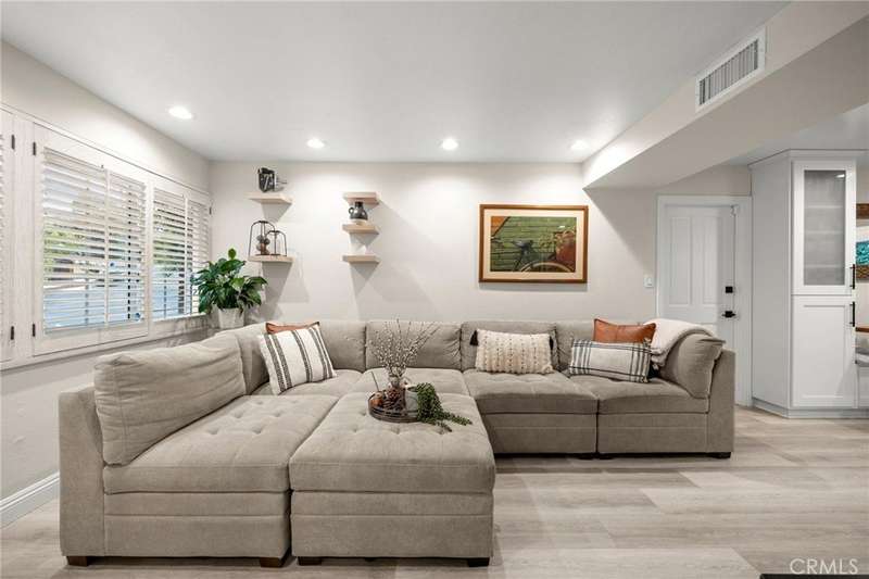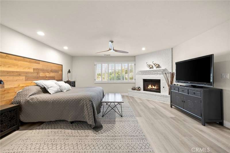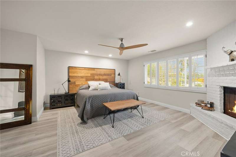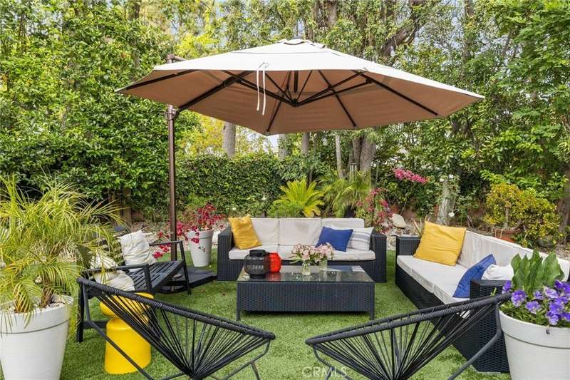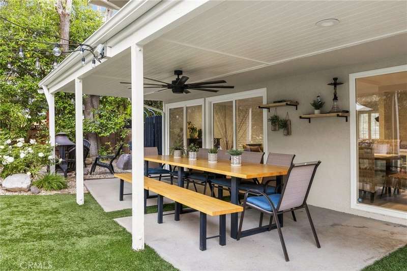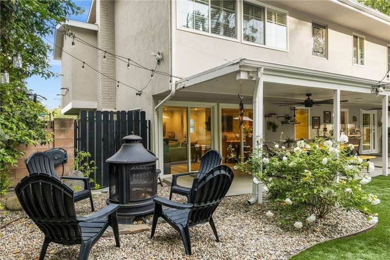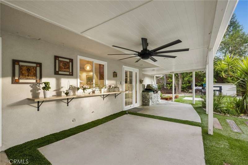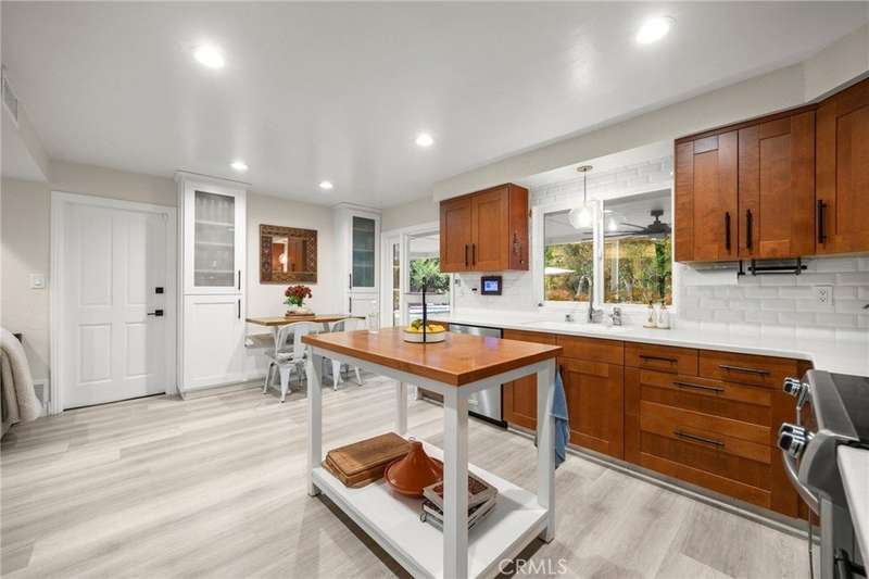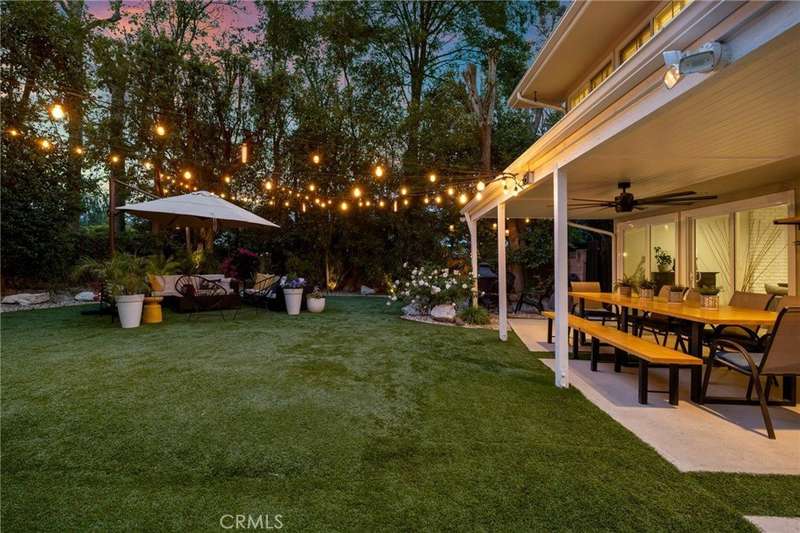 Remodeled Woodland Hills Pool Home with Amazing Backyard and Excellent Schools! Located within the highly rated and sought after El Camino Real, Hale and Lockhurst Charter Schools, this is California indoor / outdoor living at its best! Ideal for birthday parties and holiday gatherings with family and friends, this beautiful home begins with an entryway that opens into a large living room bathed in natural light and graced with an elegant fireplace. Continue into the formal dining bordered by a wall of sliding glass doors to the backyard oasis pool and gardens, a true entertainer’s delight. The cook’s kitchen offers abundant storage, updated cabinets, custom backsplash, waterfall counters, and an eating area perfect for family and guests to chat while meals are prepared. Don’t miss the over-sized family room ready for movie night or card games. The very private entertainer’s backyard beckons with a covered patio, multiple seating areas, graceful landscaping, sparkling pool (renovated and re-plastered in 2023), built in BBQ, outdoor gym area, turf with mature landscaping and fruit trees. In the evening, outdoor lighting adds magic to this breathtaking space. Recently remodeled bathrooms and oversized bedrooms complement the primary suite which offers a sitting area and fireplace – your own retreat! Double closets and vintage tile in the primary bath complete the suite with sensible charm. Newer windows, waterproof laminate flooring, LED lighting with Smart Switch, Updated HVAC and ducting, Solar with battery backup, and Security System add practical benefits to this lovely and stylish home perfect for the entire family to move right in! Come and see this fantastic opportunity to live conveniently in the West San Fernando Valley!!