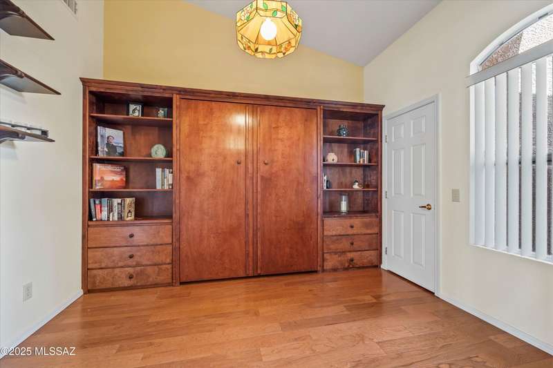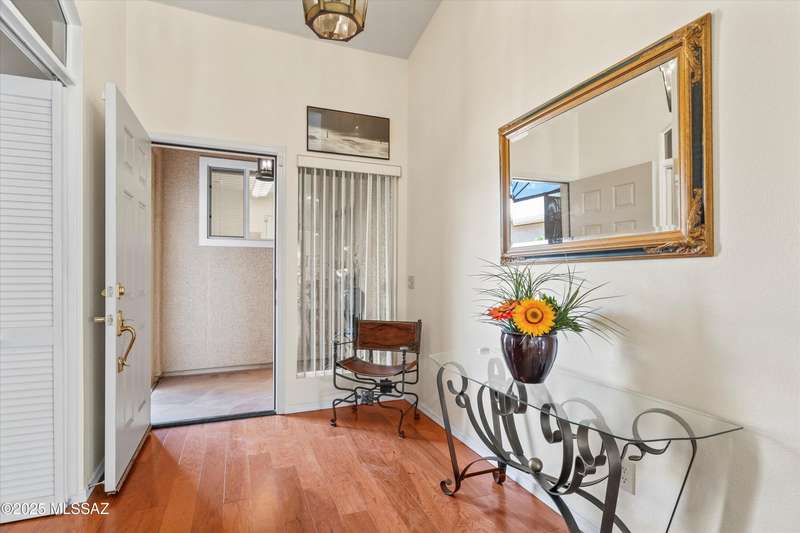Enjoy great golf course views from this popular Portofino Villa. Warm wood flooring welcomes you to this bright & sunny villa featuring a great room w/ abundant natural light & views overlooking the golf course. The kitchen offers ample cabinetry and counter space, opening to a spacious breakfast nook. The owner's suite is generously sized, leading to an en-suite bathroom with a double vanity, upgraded tile shower, & a walk-in closet. A conveniently located den includes a wall bed and can be utilized as a guest room. The covered patio provides scenic views of the golf course. Furthermore, the clubhouse, fitness center, and other HOA amenities are conveniently located nearby, providing residents with optimal access to SaddleBrooke's facilities and enhancing their overall living experience.