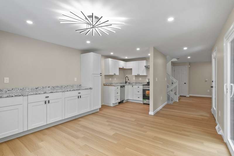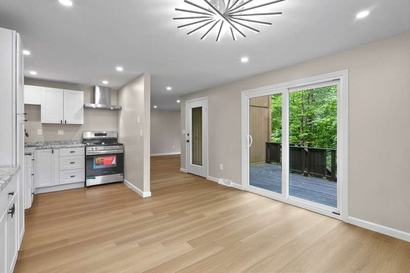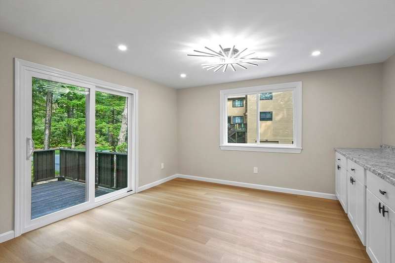 Seller will pay first six months of condo fees at closing. Welcome home to this beautifully updated condo, perfectly blending comfort and style! The open-concept kitchen and dining area showcase brand-new white shaker cabinets, stainless steel appliances, and recessed lighting. A sliding door off the dining space leads to a large front deck, ideal for morning coffee or evening relaxation. The bright, sun-filled living room features a cozy gas fireplace insert and additional recessed lighting, while a convenient half bath completes the main level. Upstairs, you’ll find two spacious bedrooms with ample closet space, along with a full bath featuring an updated vanity. The partially finished lower level offers a versatile bonus room plus a separate storage area. Additional highlights include paved parking, an attached one-car garage, and central air. Tucked away in a peaceful setting, yet close to all conveniences—your new home awaits!