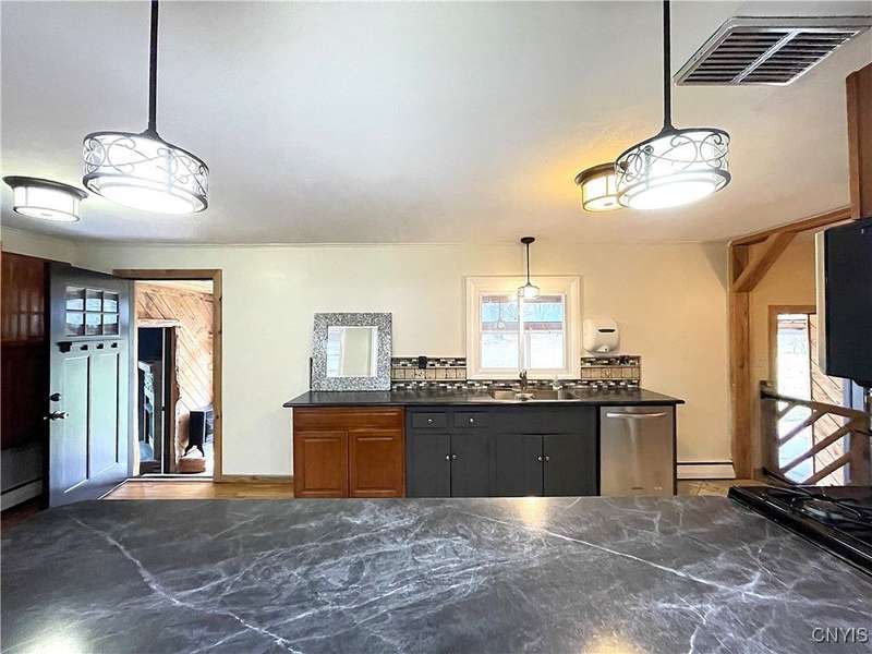 Nestled in the heart of Manlius neighborhoods, a rare gem awaits who's seeking the perfect blend of convenience and comfort. Welcome home to this classic brick ranch that redefines single-level living.This charming residence spans 1,766 sq. ft. of space includes the newer remodeled 616 sq. ft. master bedroom suite, complemented by an ADDITIONAL 630 sq. ft. in the partially finished lower level. A seamless, manageable open floor plan effortlessly guides you from the front entry into an inviting living room, where a warm wood-burning fireplace anchors the space. This flows into a modern gourmet kitchen, adjacent to a rustic chic bar area featuring its own fireplace and framed by floor-to-ceiling sliding doors, offering panoramic views of the expansive backyard for all seasons. The home boasts a total of four spacious bedrooms and two and a half bathrooms. The sizable master suite is a true sanctuary, complete with a cozy gas fireplace, a considerable master bath, and a private sitting area. Three additional bedrooms and a full bath are conveniently located on the first level. Partially finished basement with lofty Rec room area, half bath, and an additional bedroom/office with built in shelves. Outdoor living is elevated on the generous 0.71-acre lot, ensuring ample room for both grand entertaining and quiet retreat. .The newly finished landscape (2025) and a double-wide driveway lead to an impressive front yard, while the vast, flat backyard features a refinished deck and patio (2025), perfectly poised to accommodate large gatherings or serene personal enjoyment. The property has been fully improved with a NEW roof, A/C, interior paint (all 2025) and more, making it move-in ready. Located in the Fayetteville-Manlius School District, the home offers a serene neighborhood setting with immediate proximity to the natural splendor of Three Falls Woods, Green Lakes State Park, Pratts Falls Park, and the scenic Erie Canal trails. This must-see property delivers the best of Manlius living: a harmonious blend of a private, spacious lot, excellent schools, and easy access to local amenities. Experience character, comfort, a coveted lifestyle here daily, your next home.
