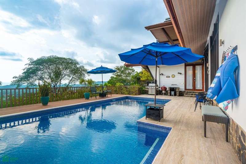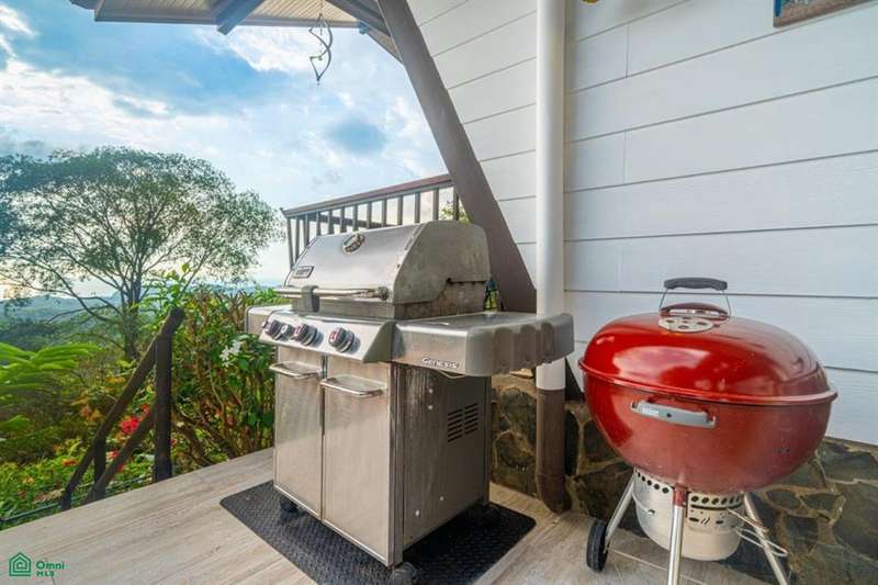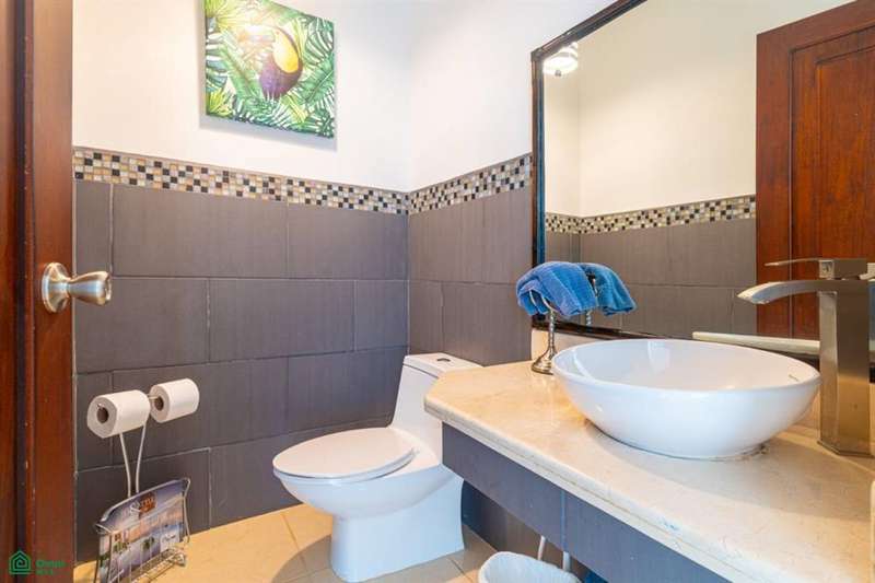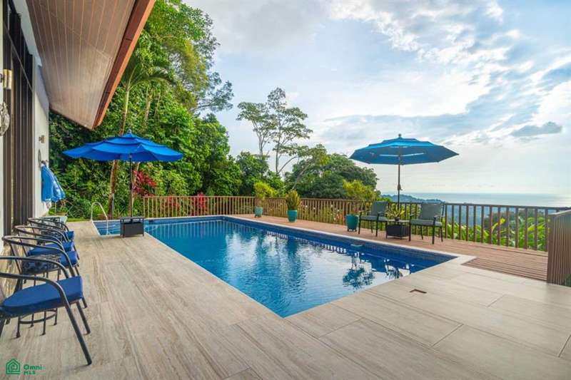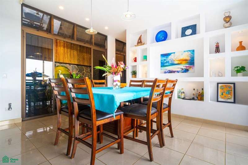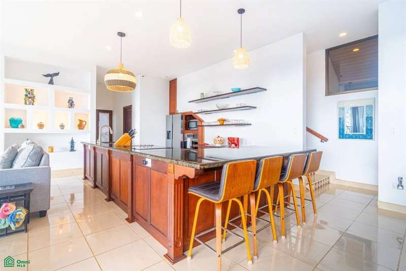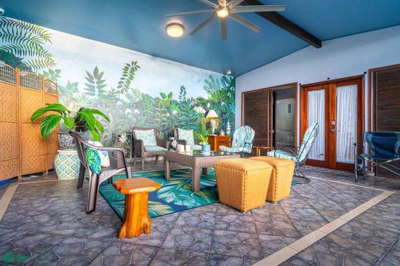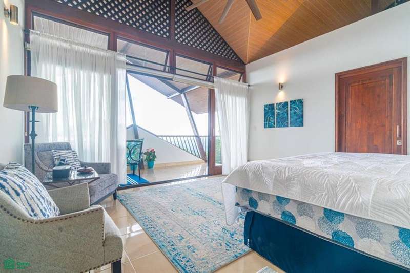 As you enter Casa Dream Catcher from the covered carport the owners have thoughtfully designed a screened entertainment rancho area that all your friends and family can enjoy. From its rancho, to the right is a convenient half bath and to your left is a huge walk in pantry with humidity control just off the chefs kitchen. You will enjoy the extra large island for prepping or laying out your buffet. The open concept area has dramatic whitewater ocean view as you prepare your fresh haul of the local farmers market while your guests sit and converse in the comfy living room. Enjoy morning coffee on the porch adjacent to the living room and watch the monkeys play in the trees as the toucans fly by. Game of cards anyone? You're all set up with a table and chairs for whatever activities your heart desires.
