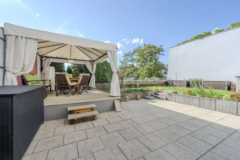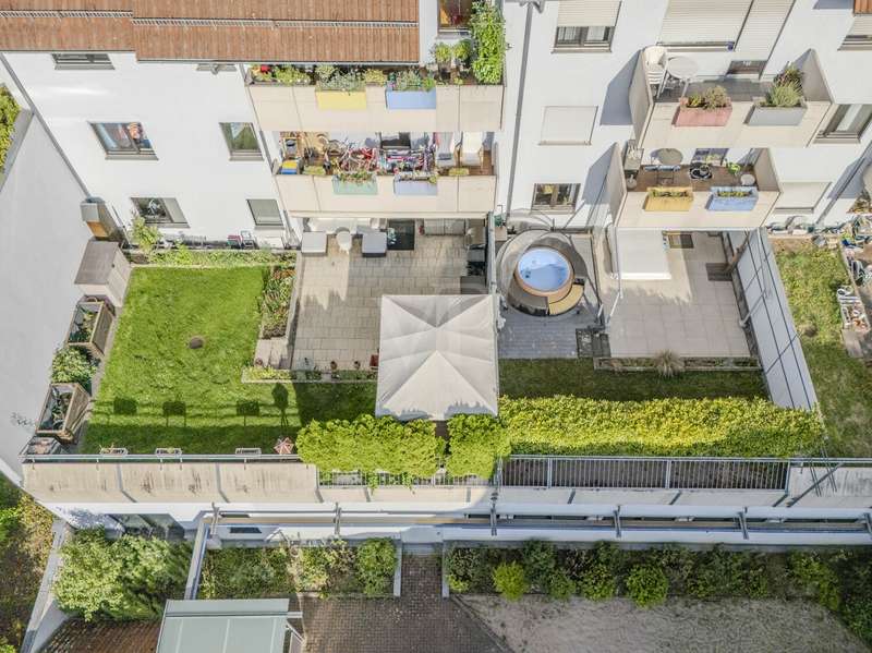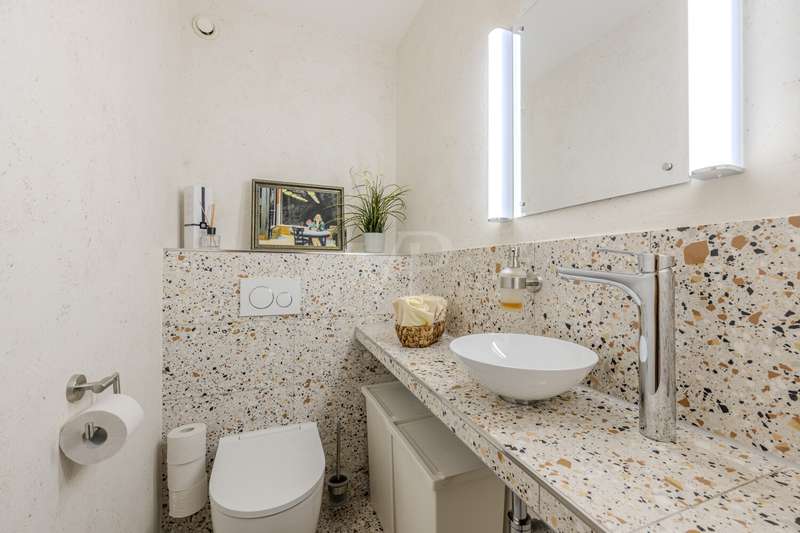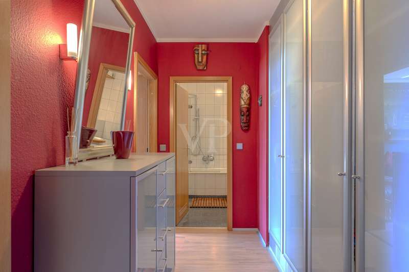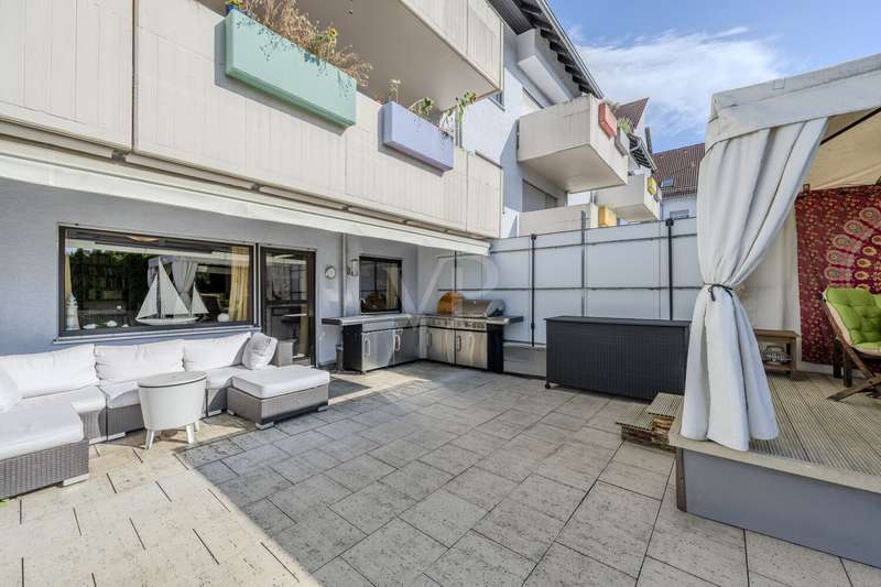 This approx. 95 m² apartment on the 1st floor of a well-kept apartment building from 1984 offers an appealing combination of generous space, modern furnishings and attractive outdoor areas. The building has been continuously maintained and most recently modernized with new elevators (2020). The apartment was extensively renovated in 2003 - including floor coverings and bathrooms - and presents itself in a well-kept, contemporary condition. The open-plan living and dining area creates a pleasant sense of space and forms the center of the apartment. The kitchen dates from 2016 and blends harmoniously into the living area. The additional guest WC was completely renovated in 2021. A special highlight is the spacious terrace and outdoor area: this apartment has a modern outdoor kitchen and a covered outdoor seating area as well as an adjoining garden area - ideal for sociable hours outdoors and relaxed living in the countryside. An underground parking space included in the purchase price ensures convenient parking. A renovation of the underground garage is planned; the reserves for this are already being built up, which is reflected in the current house rent. Modernizations of the entire complex - including the newly plastered façade (2003) and window maintenance including new seals (2017) - underline the well-kept condition of the house. The apartment is currently used together with the adjoining neighboring unit, but the two are separate in terms of administration. The owner is responsible for returning the property to its original condition. There is the option of purchasing both apartments at a special price. The apartment is heated by district heating and impresses with its solid, modern furnishings. Shopping facilities, public transport and leisure activities are within easy walking distance - ideal for couples, small families or commuters who value living comfort and an attractive outdoor area. We would be happy to present this special apartment to you personally. We look forward to your inquiry!