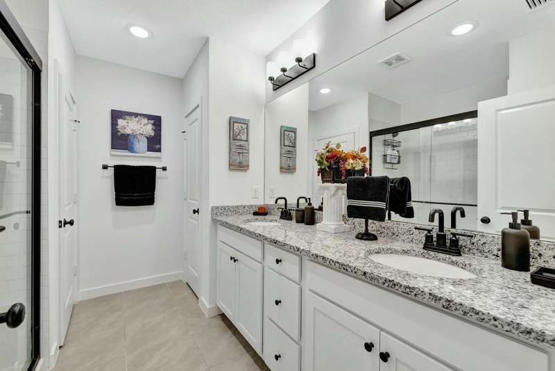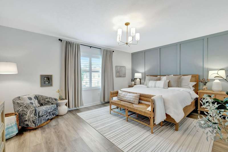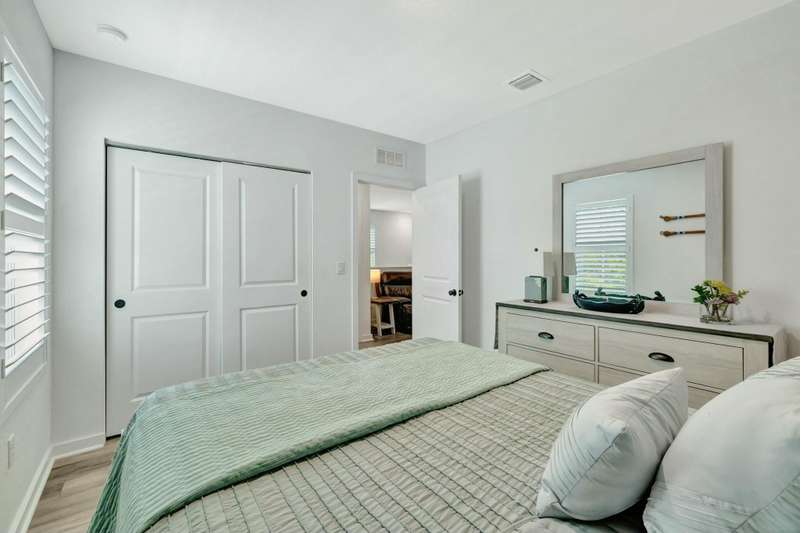 Beautiful 4-Bedroom, 2.5-Bath + Den Corner Unit with Farmhouse Charm!Welcome to this spacious and stylish corner unit, designed with a curated Farmhouse Design Palette and upgraded throughout for modern comfort. The home features plantation shutters on every window, engineered hardwood flooring throughout (no carpet!), and designer chandeliers, ceiling fans, and light fixtures that elevate every room.The open-concept layout is perfect for both everyday living and entertaining, with a beautifully screened-in lanai and a private patio framed by lush Clusia bushes, creating your own serene outdoor escape. Inside, enjoy 42'' shaker-style cabinets, a stylish tile backsplash, and a versatile den ideal for a home office or flex space.