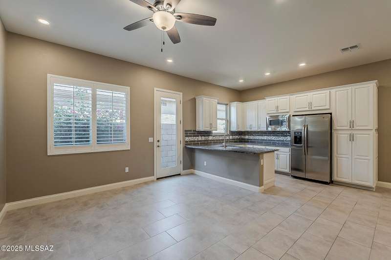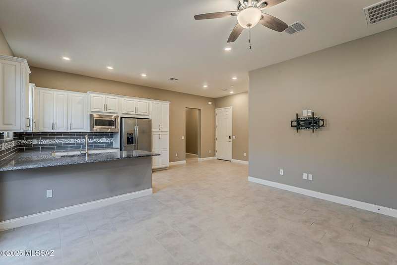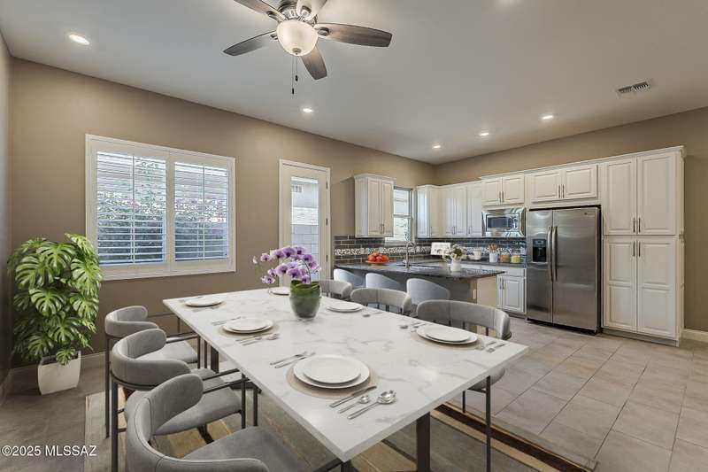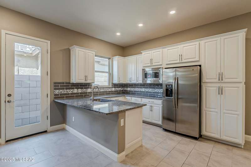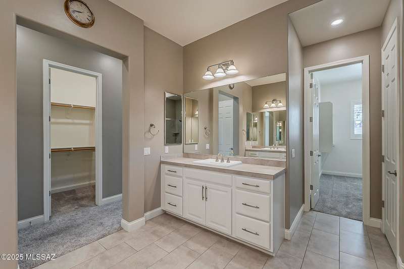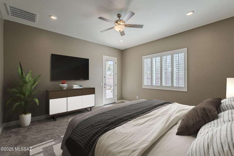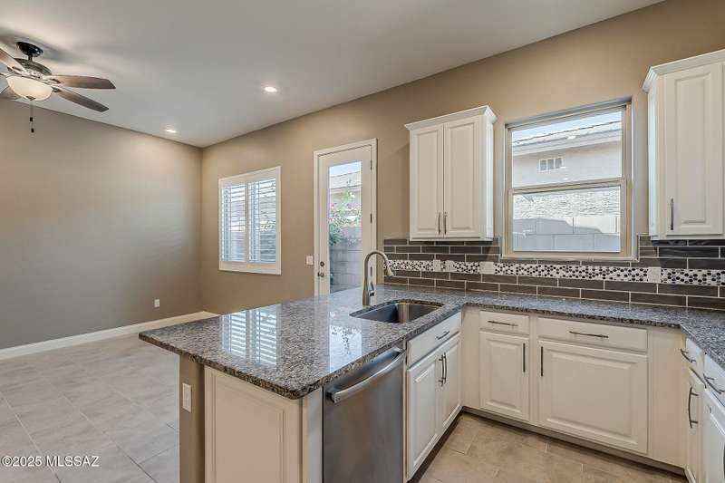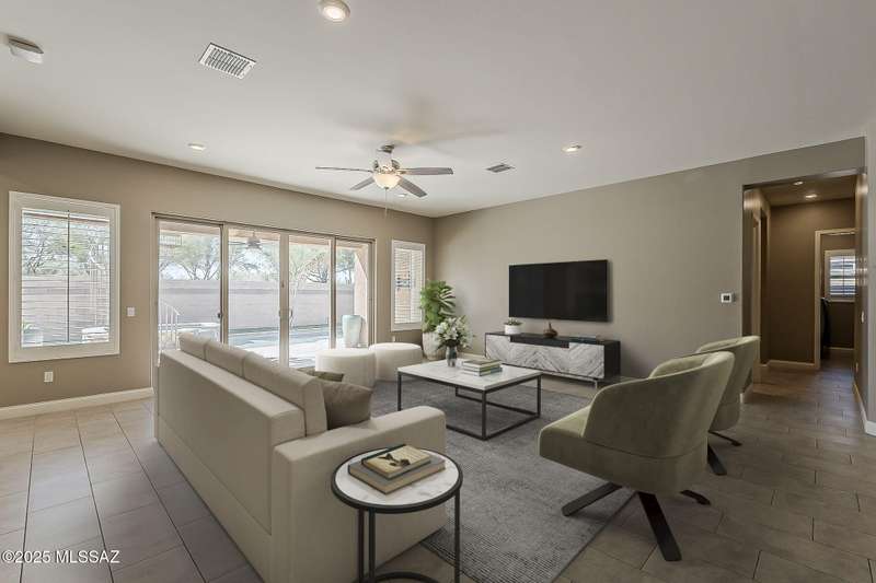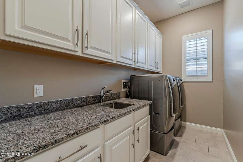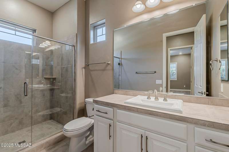 Experience modern desert living in this stunning 5-bedroom, 3.5-bath residence featuring a highly sought after ''Next Gen'' residence in Oro Valley's exclusive Eagles Summit community. Designed for luxury & versatility, the private suite features its own entrance, kitchen, bath, laundry hookups & garage--ideal for guests or multi-generational living. The main home showcases a spacious great room & gourmet kitchen w/ stainless steel appliances, large island & breakfast bar. Enjoy a heated saltwater pool & spa, gas firepit, covered patio, & spiral staircase to a rooftop deck w/ breathtaking views. Designer touches throughout, this home embodies luxury, comfort, and privacy. Smart home controls for pool, spa, A/C & doors, plus paver driveway & high-end turf complete this stunning retreat!