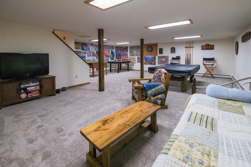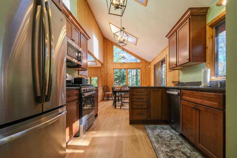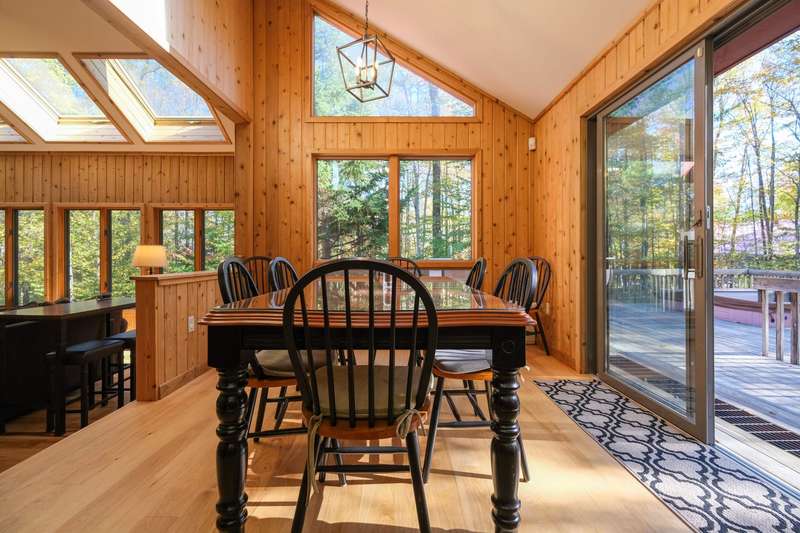 Welcome to your mountain getaway on Okemo! This renovated spacious 3-bedroom, 2.5-bathroom home offers the perfect combination of comfort and convenience in a sought-after ski location. The main level welcomes you with a generous mudroom with storage and direct access to the attached one-car garage. Two bedrooms and a full bathroom are also located on this level, along with a sunken living room filled with natural light from skylights above. Enjoy the soapstone fireplace on cold winter evenings. The modern updated open kitchen flows seamlessly into the dining area, where sliders lead to a large back deck complete with a sunken hot tub ideal for soaking after a day on the slopes. Upstairs, the private primary suite offers a walk-in closet and a full bathroom with double vanities. The lower level is designed for fun and relaxation with a spacious game room, half bath, and laundry area. An easy keeper with a new roof, 50amp outlet in garage for EV charging, new flooring/carpet and more!